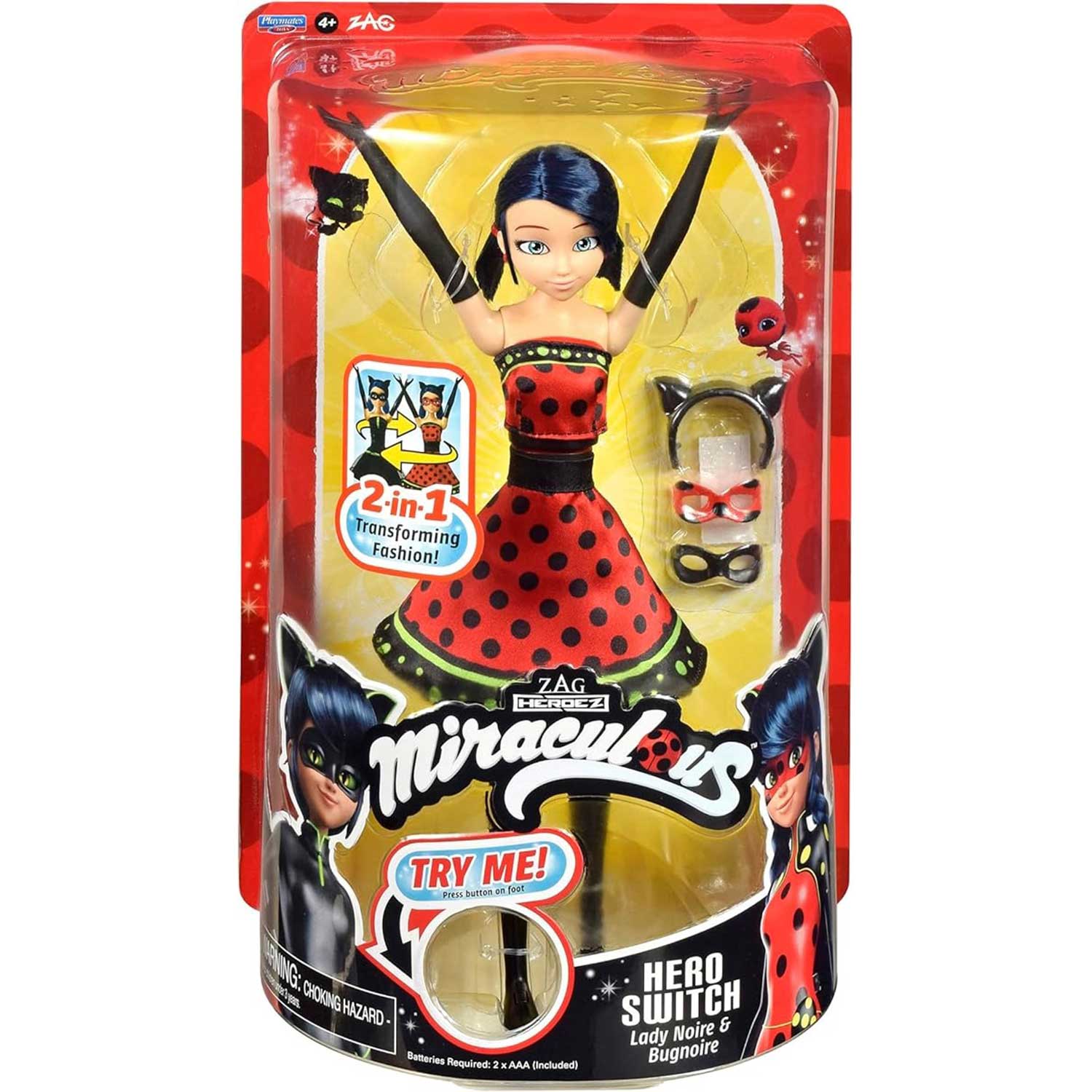 - функция смены наряда 2-в-1: одним нажатием кнопки красное платье в горошек Леди Баг превращается в чёрное платье с зелёными ленточками в стиле Супер Кота