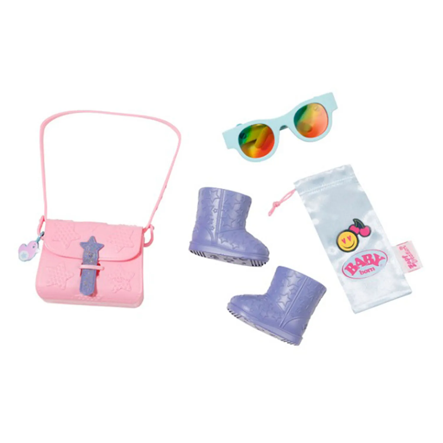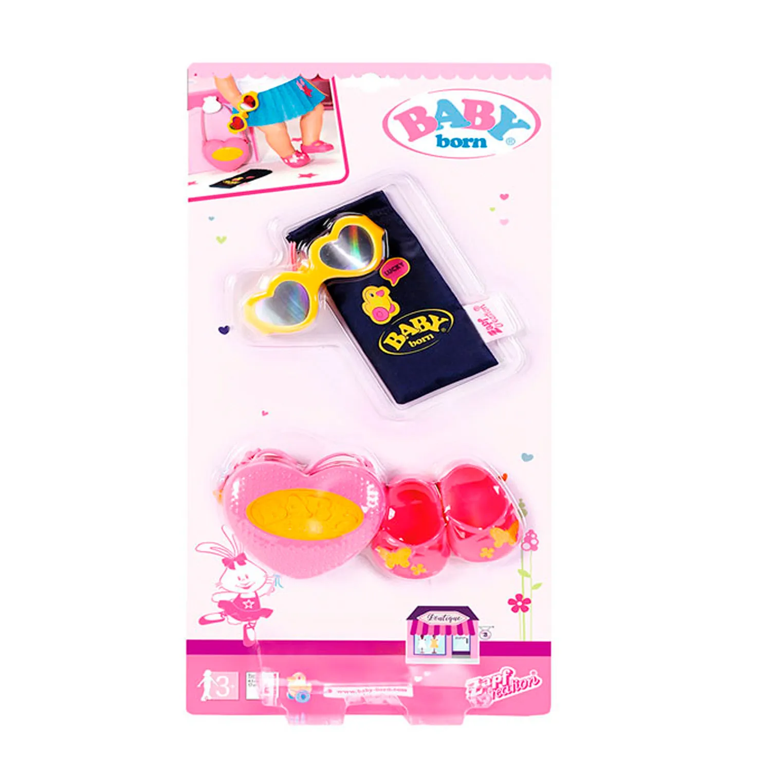 - набор состоит из сумочки, обуви, очков и футляра для них