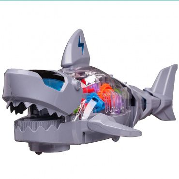 - во время движения корпус акулы подвижен, она шевелит хвостом, плавниками и забавно щелкает своей зубастой пастью