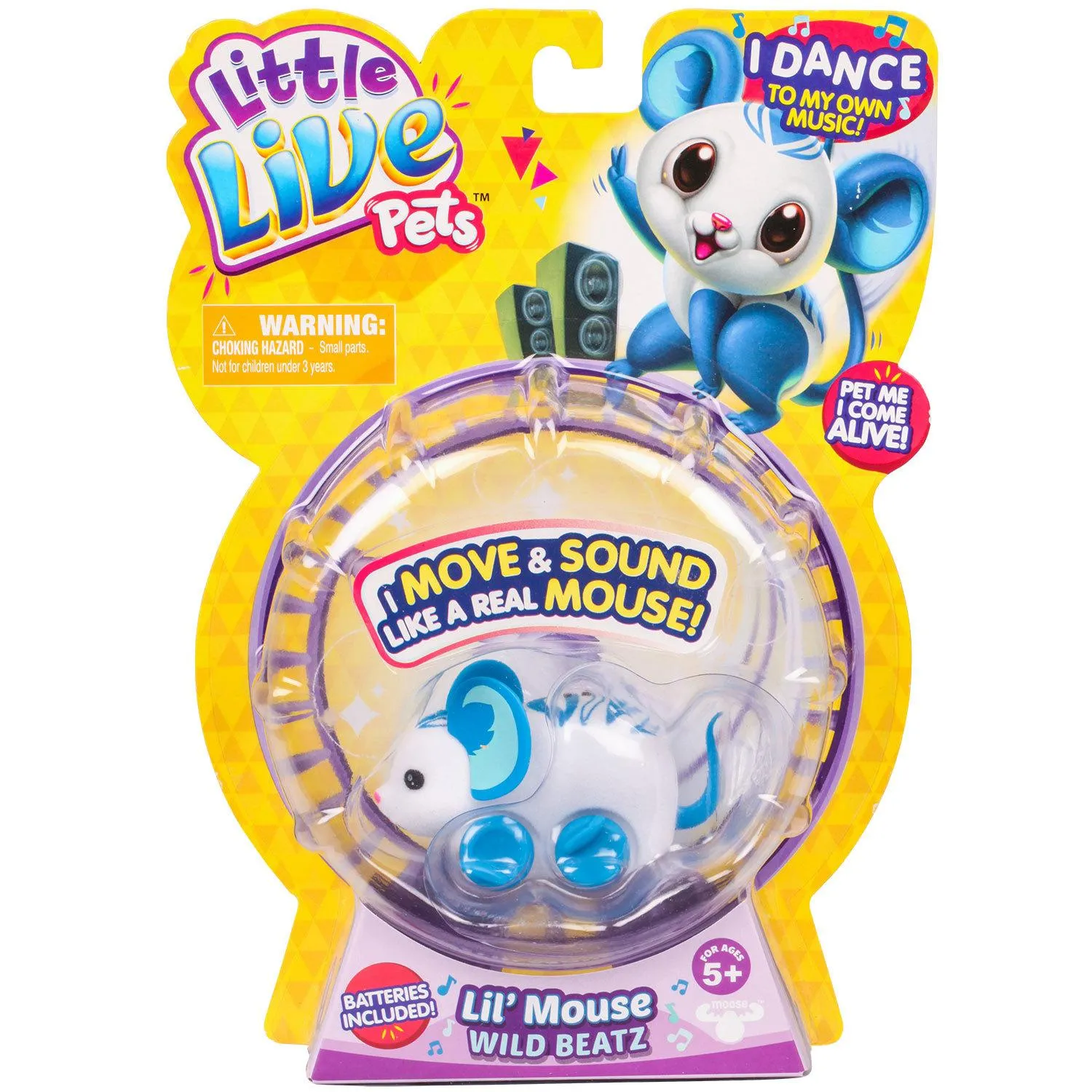 Мышка из 3 сезона Little Live Pets Вилд Битз – это веселый и энергичный мышонок сине-белого цвета, который любит веселые танцы под музыку.