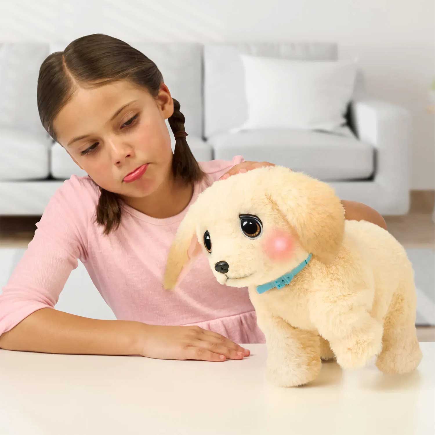 - щенок издает более 50 уникальных звуков и реакций — умеет хромать, реагировать на прикосновения и действия ребёнка и др.