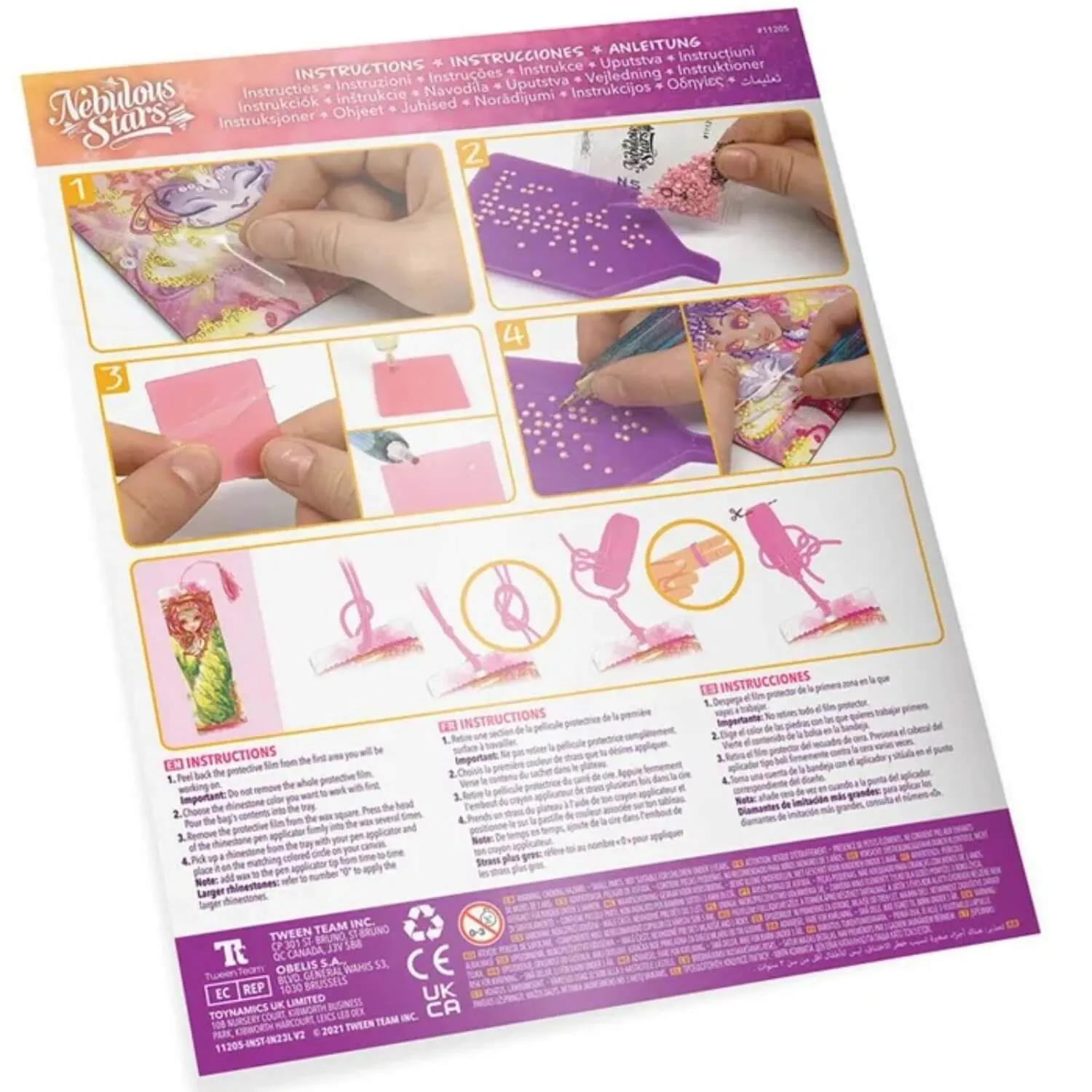 - создай ослепительные шедевры, украшая блокнот, мини-блокнот, магниты на холодильник и закладку стразами, следуя инструкции и цифрам