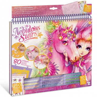 Раскраска для девочек – большой скетчбук с набором трафаретов, рисунков для втирания и специальных техник рисования от канадского бренда Nebulous Stars.