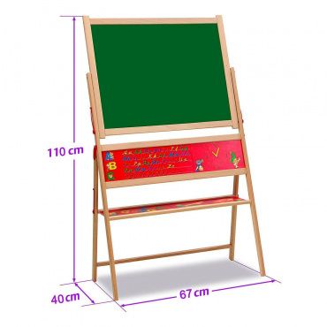 - имеет две грифельные рабочие поверхности: для рисования и письма мелками