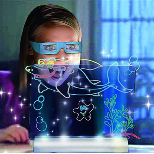 Набор 3D Доска для рисования Сказочный патруль включает специальную доску и трафареты для рисования. С помощью фломастеров можно нарисовать на доске изображение, а затем, надев 3D очки, увидеть получившееся изображение в объеме.