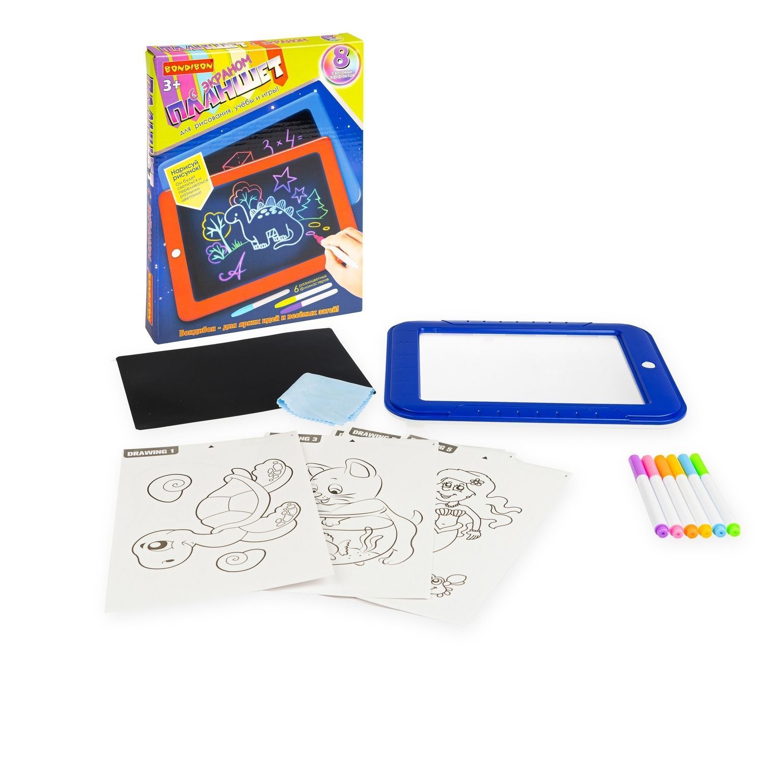 ВВ5171 Планшет с экраном для рисования Bondibon, с обуч. карт., подсветкой, BOX 20x26x2,5см, синий
