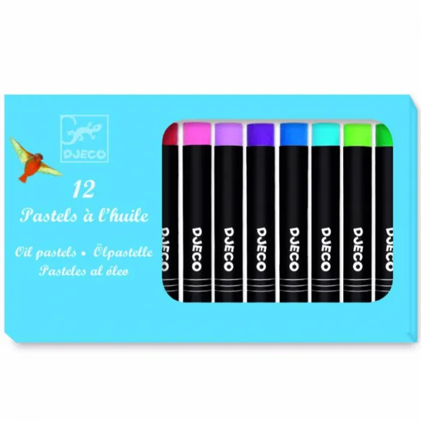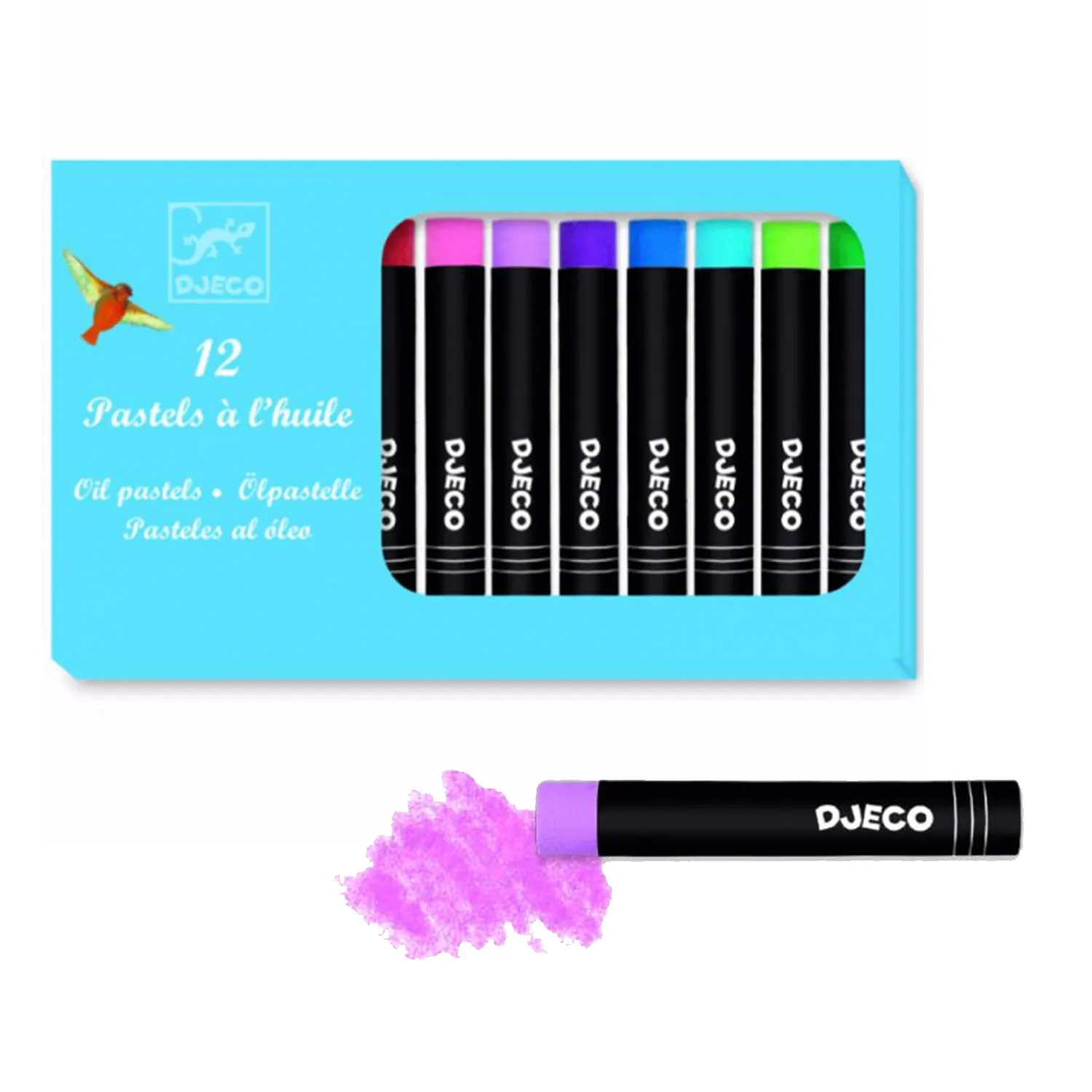 В наборе ребенок найдет 12 разноцветных карандашей из масляной пастели.