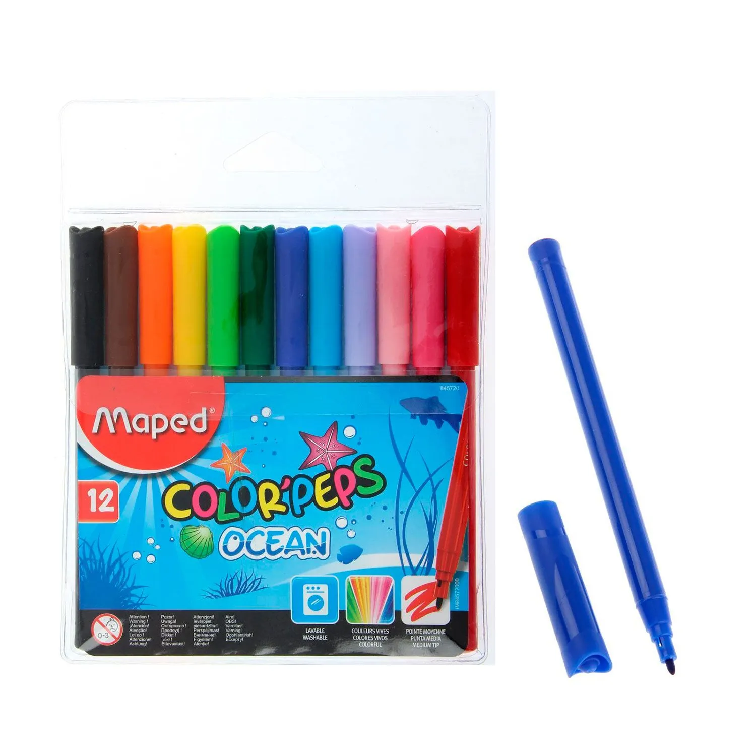 Фломастеры Color'Peps Ocean от крупного производителя канцелярских товаров Maped сделают рисунок ребенка красочным и неповторимым.