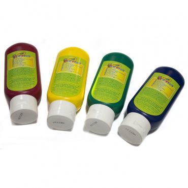 - в набор входят краски четырех цветов: желтая, красная, зеленая и синяя