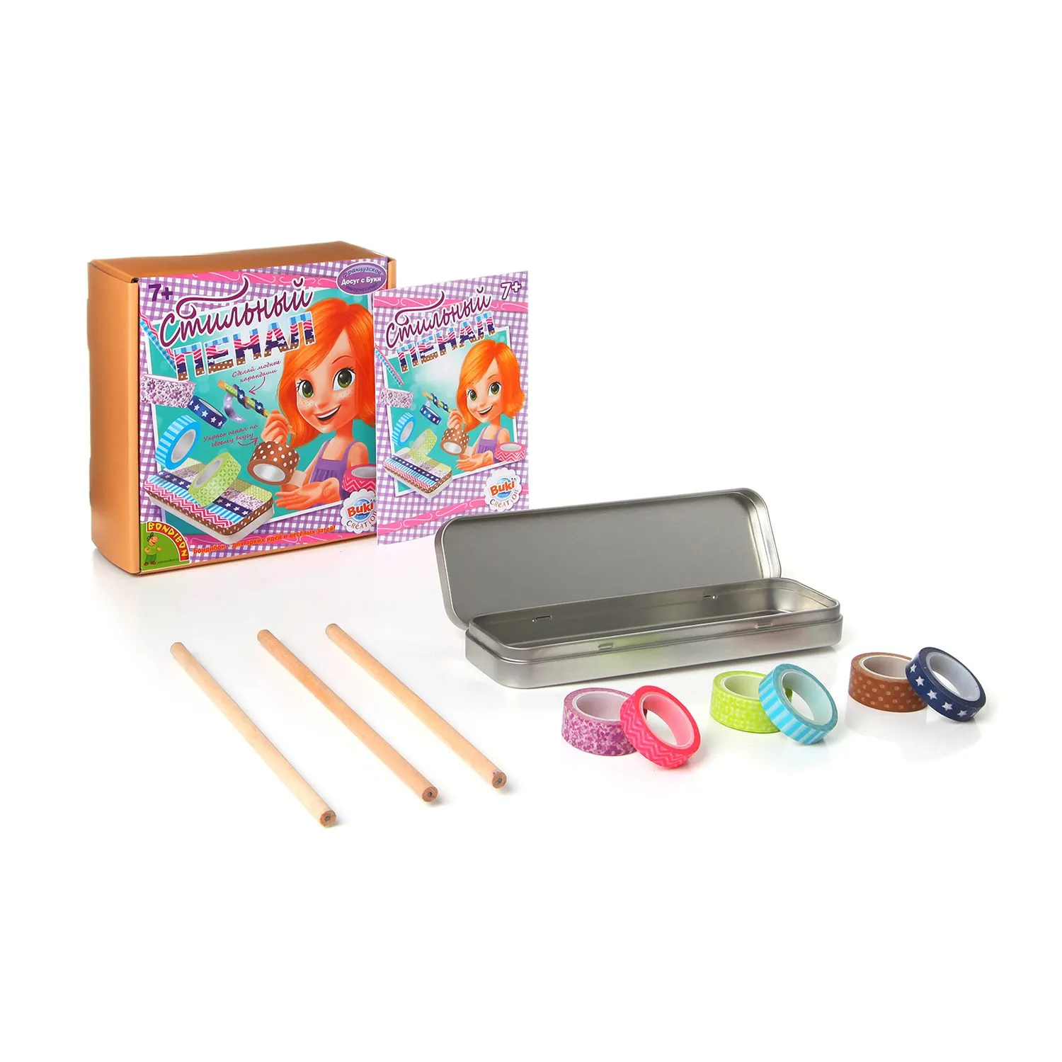 Тому, кто неравнодушен к красивым стильным вещам и стремится во всем проявлять собственную индивидуальность, набор для творчества «Стильный пенал» – именно то, что поможет в этом стремлении. В руках юного умельца обычный пенал с простыми карандашами превратится в эксклюзивную вещицу, которой нет ни у кого! С помощью разноцветных декоративных скотчей можно оригинально комбинировать рисунки и цвета, создавая бесконечное множество оригинальных декоров. Дав волю творческой фантазии, можно легко и весело создать свой собственный уникальный стиль!