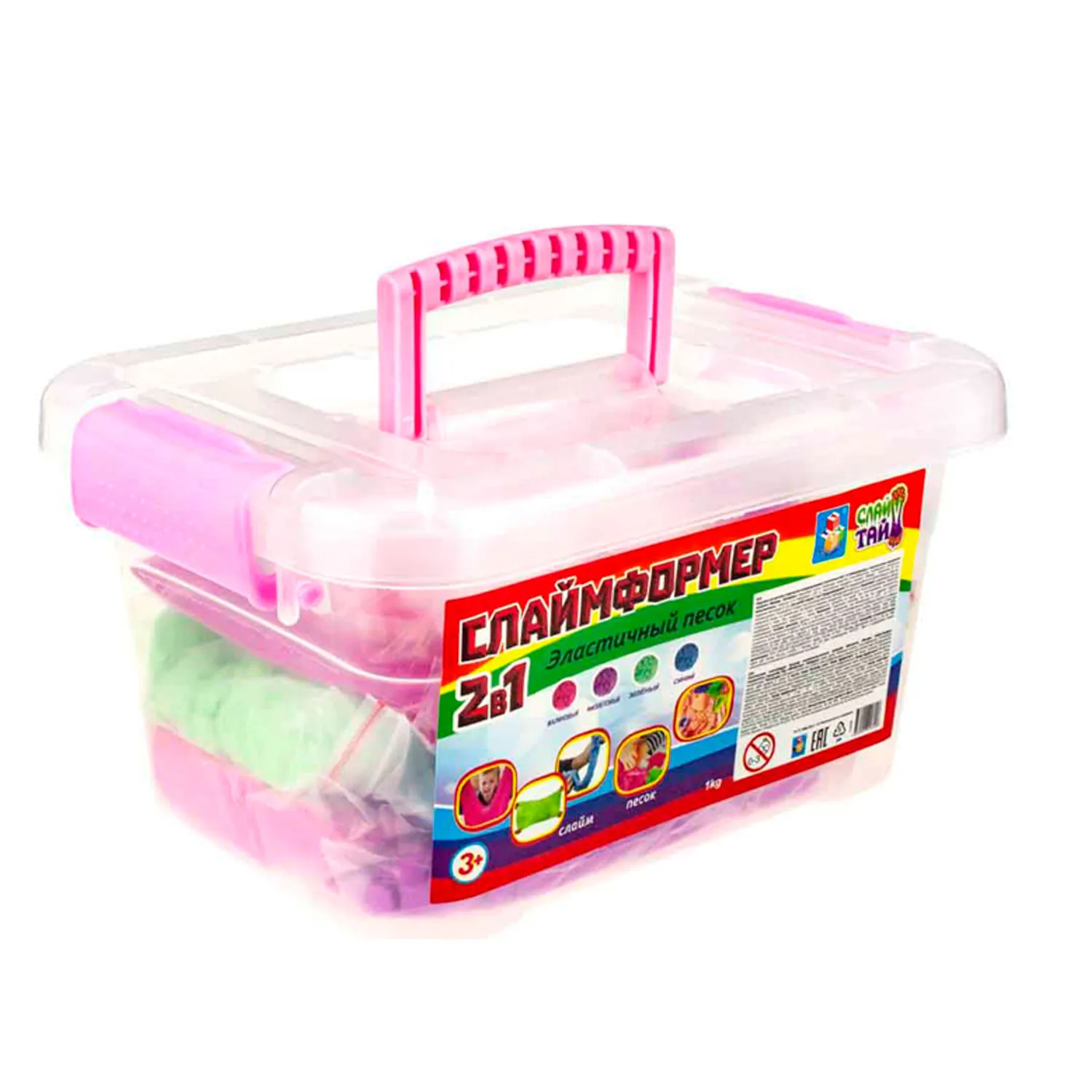 Т16549 Слаймформер. Набор 4 цвета по 250 гр с 6 формочками и надувной песочницей (для девочек)