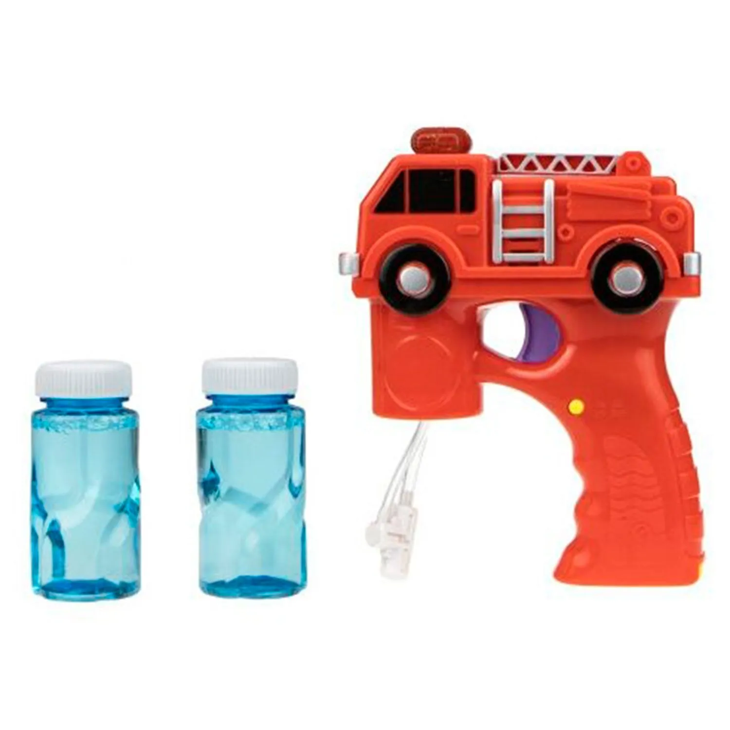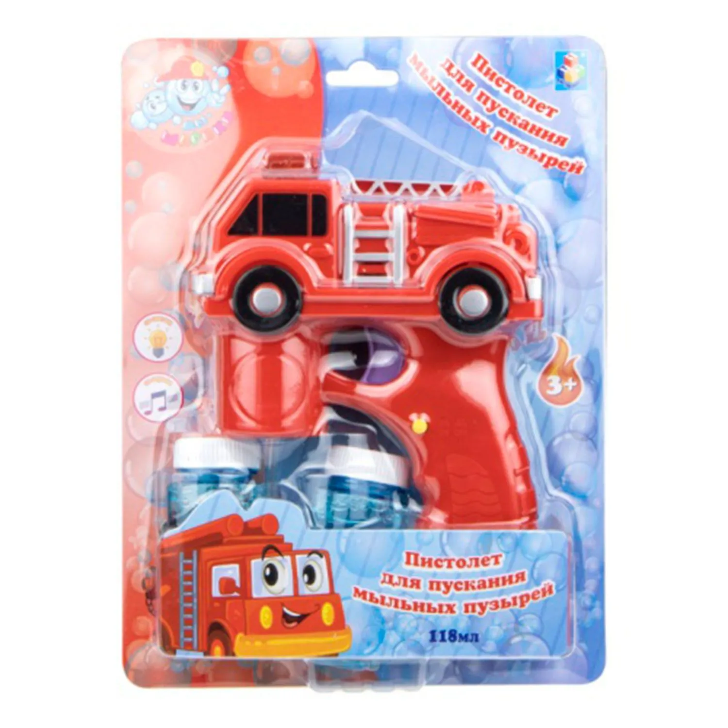 Игрушка в форме прозрачного пистолета Пожарная машина с механизмом для пускания мыльных пузырей.