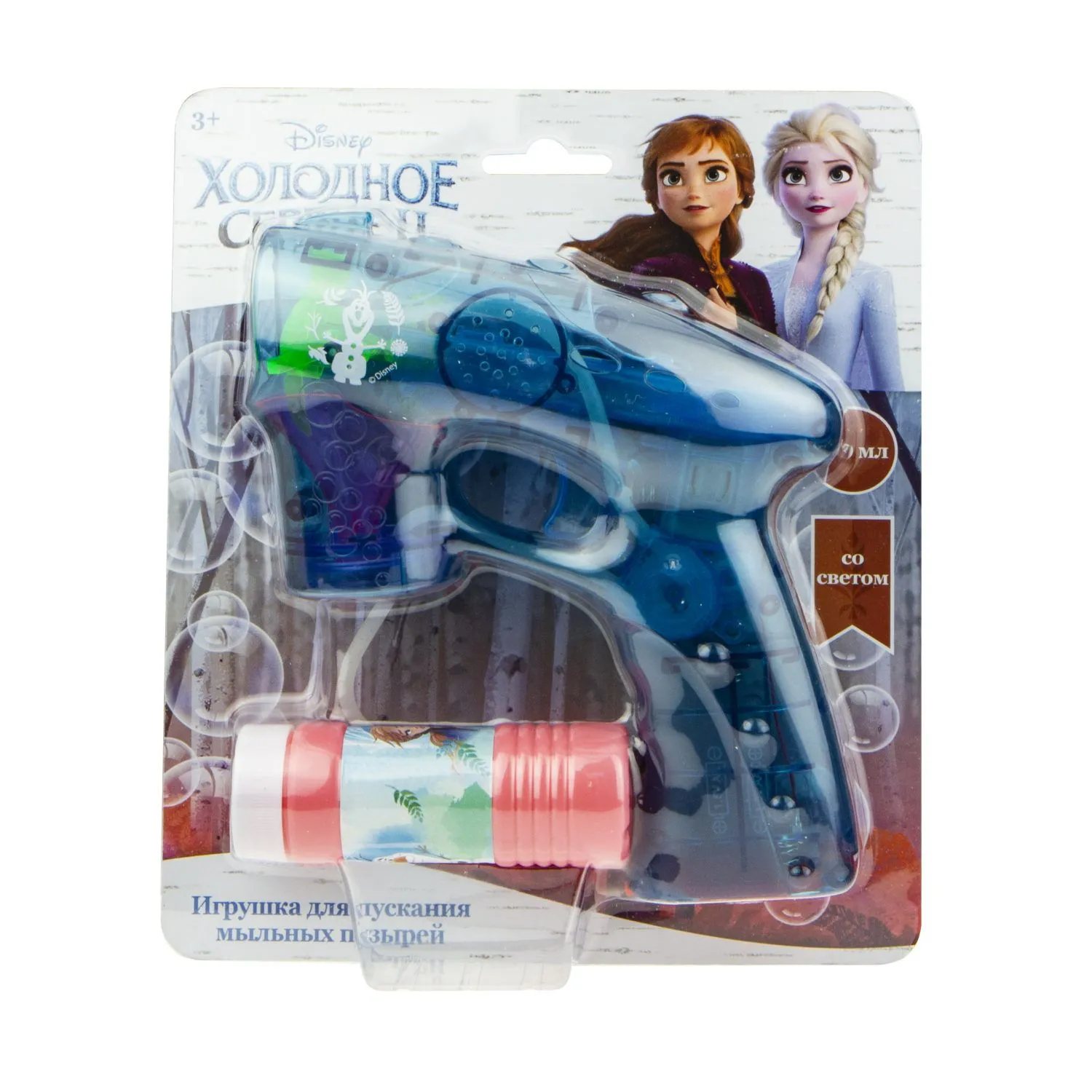 Игрушка в форме прозрачного пистолета "Холодное сердце" с механизмом для пускания мыльных пузырей.