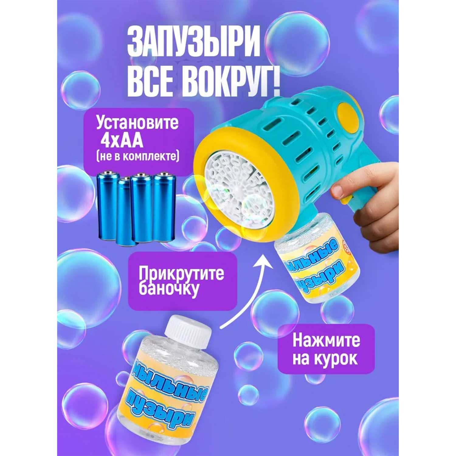 - бластер работает от 4 батареек типа AA (в комплект не входят).При нажатии на курок создается поток мыльных пузырей через 30 отверстий