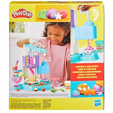 - создавайте закрученные, спиральные, разноцветные фигурки мягкого мороженого с помощью этой мороженицы Play-Doh