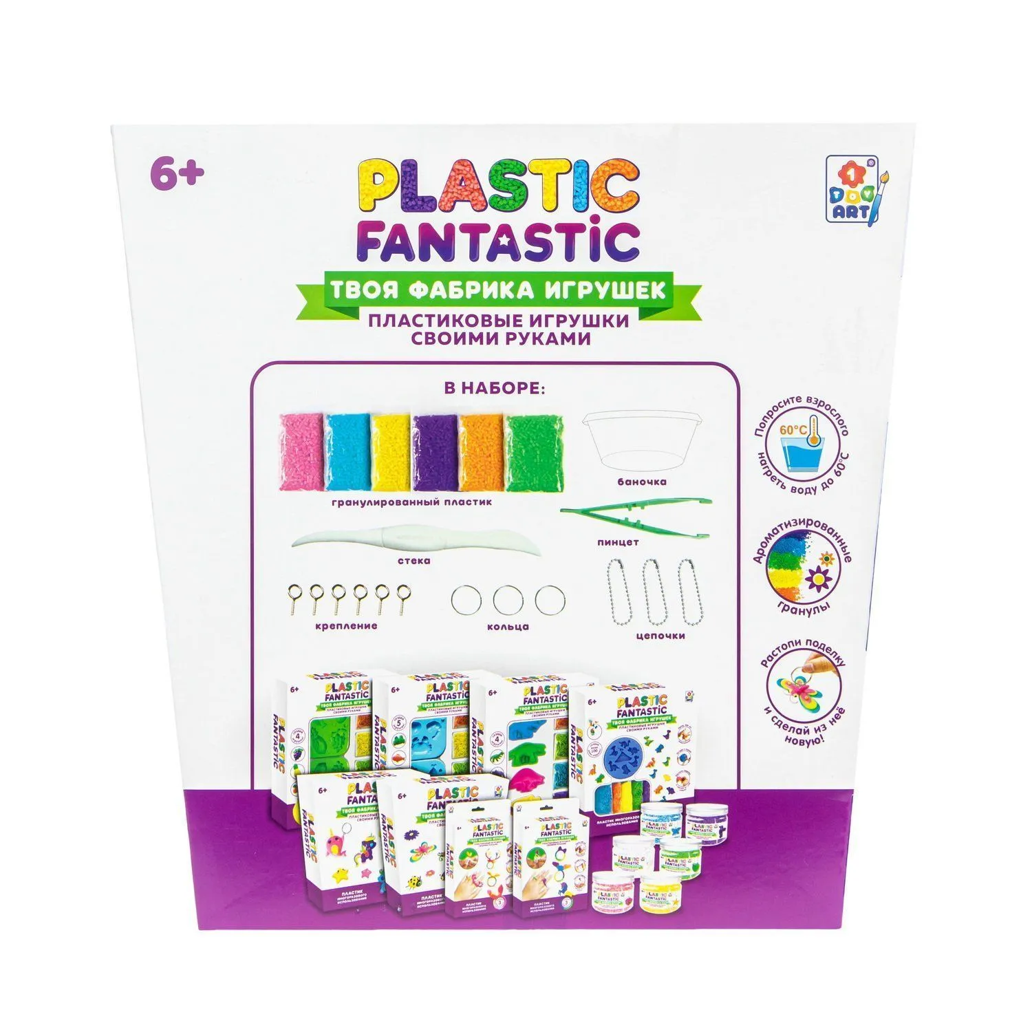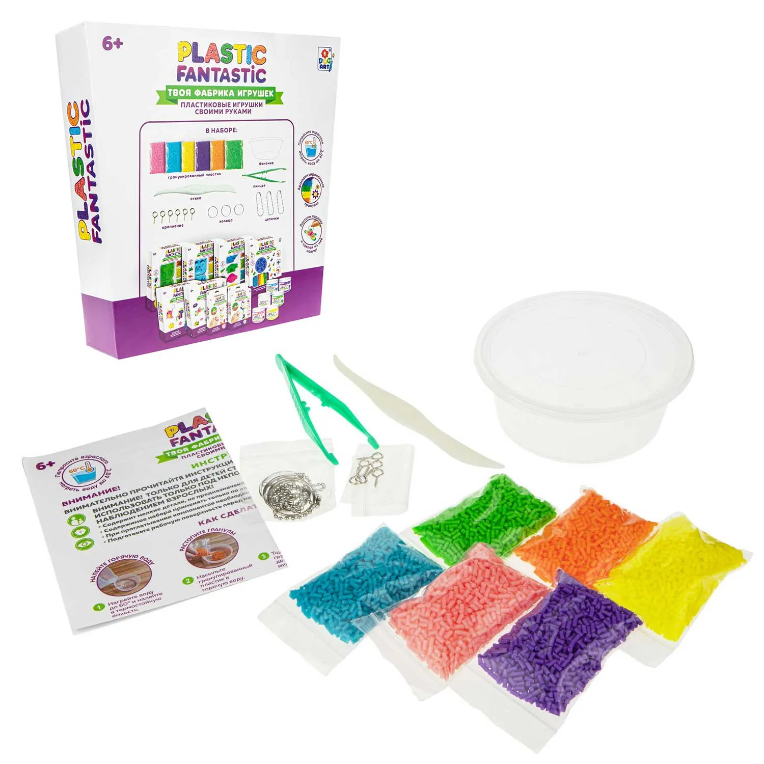 PLASTIC FANTASTIC - это эксклюзивная линейка наборов для изготовления игрушек, украшений и брелоков из гранулированного пластика.