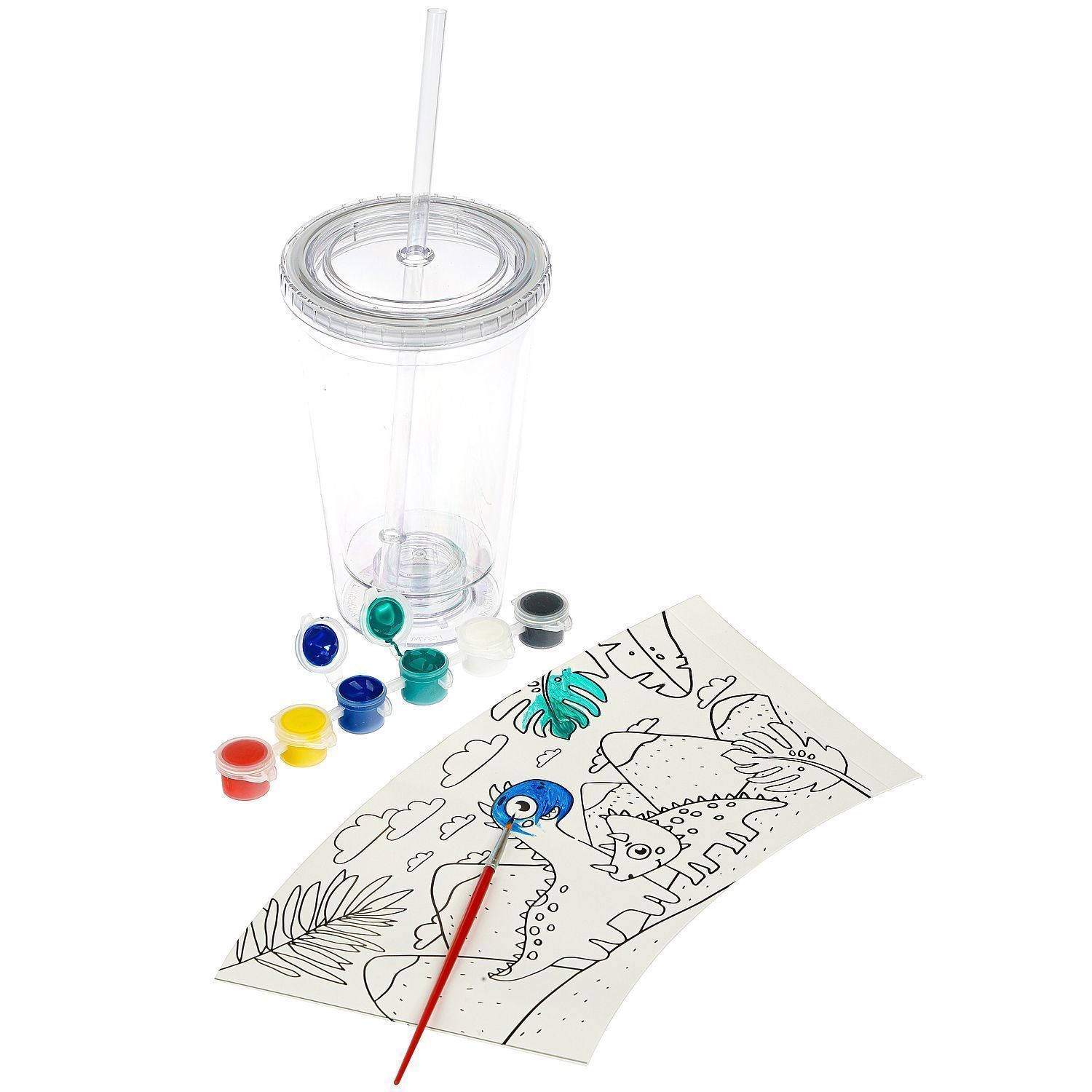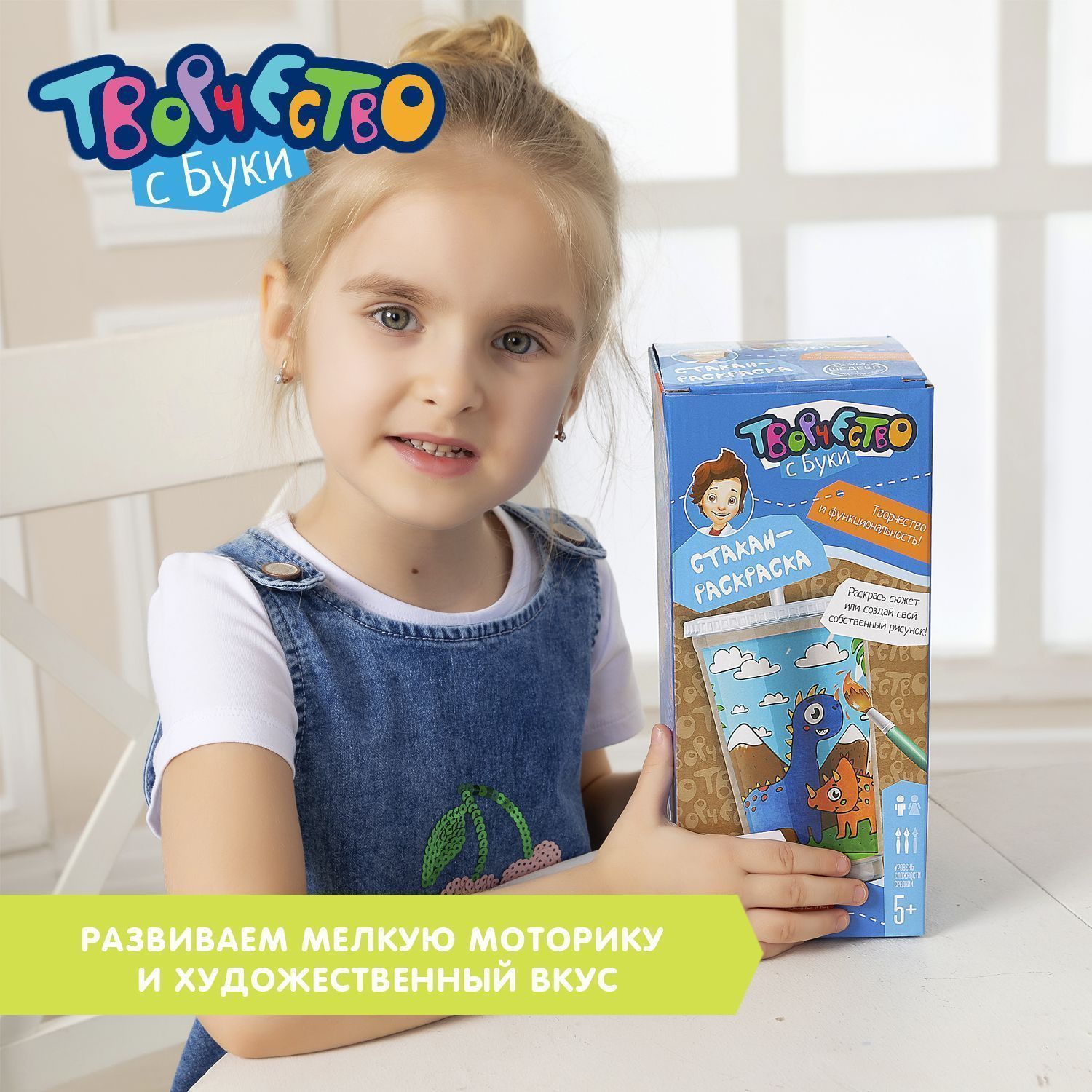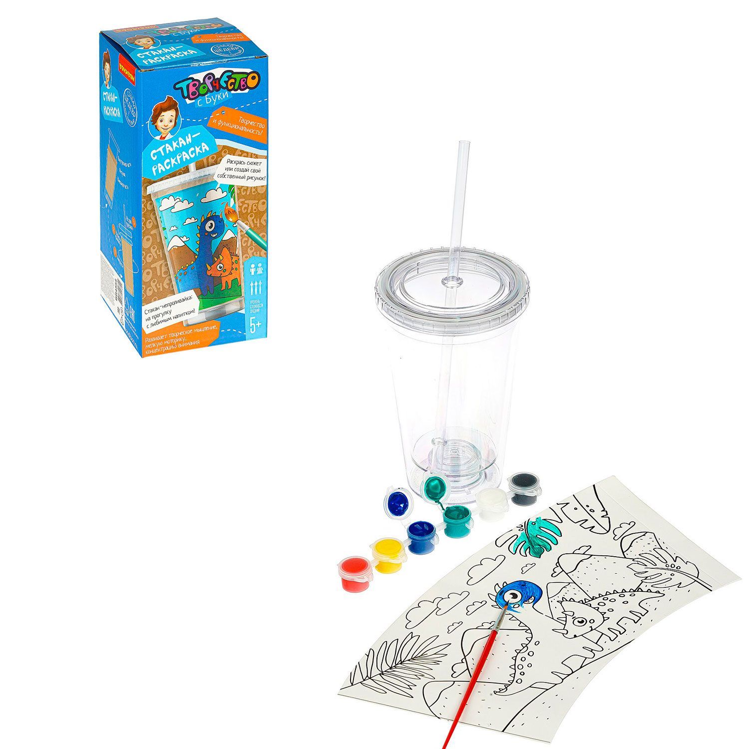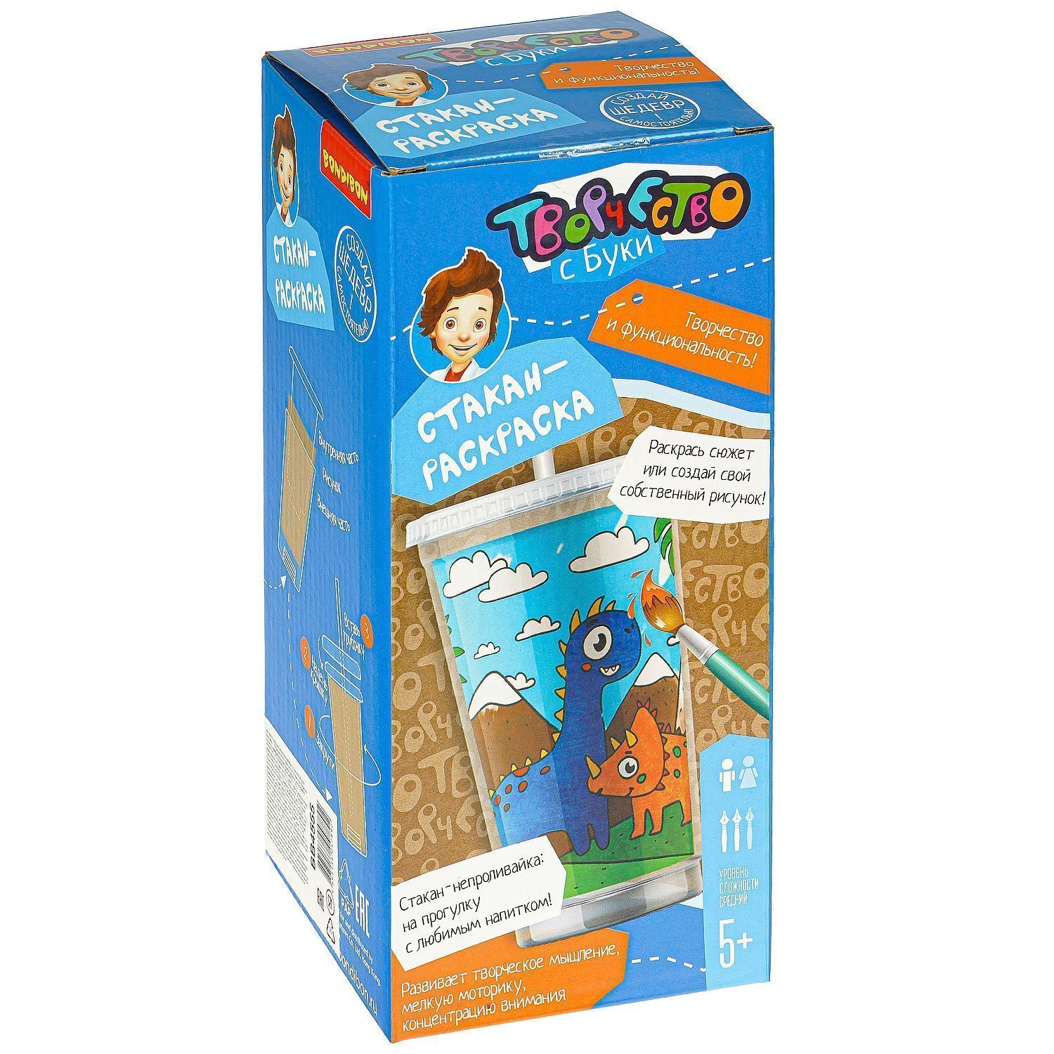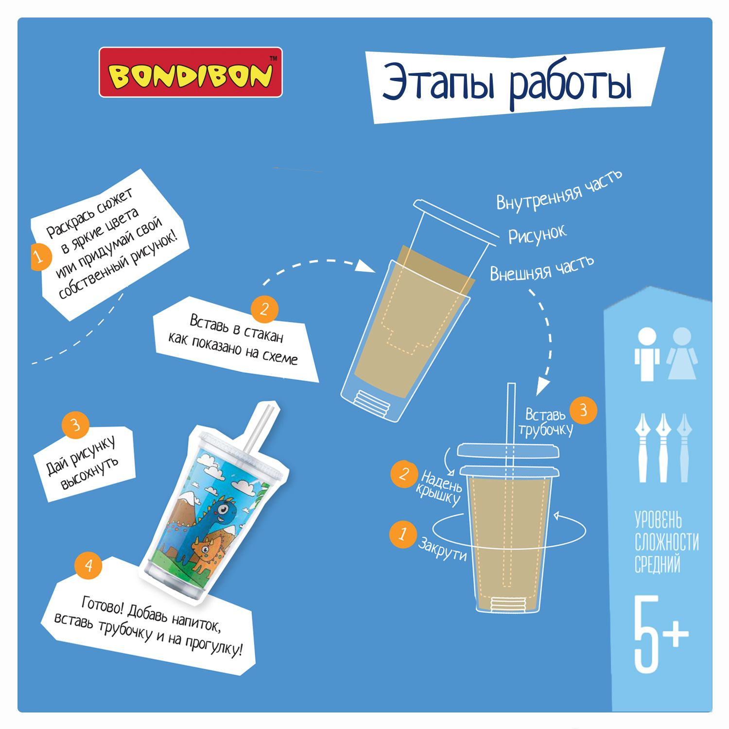 СТАКАН-РАСКРАСКА "ДИНОЗАВРЫ" от Bondibon - это набор 2 в 1: и творчество, и функциональное использование!