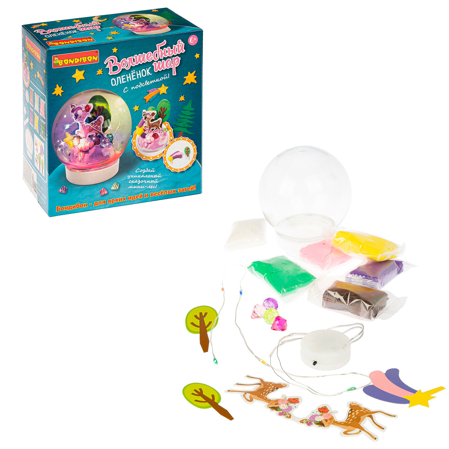 Набор для творчества ВОЛШЕБНЫЙ ШАР "ОЛЕНЁНОК" с подсветкой от ТМ Bondibon позволяет создать маленький мир внутри волшебного шара с подсветкой.