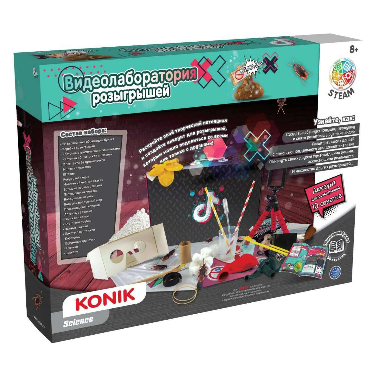 С набором «Видеолаборатория розыгрышей» вы сможете создать собственный аккаунт с розыгрышами и поразить своих друзей и близких удивительными научными фокусами. Раскройте свой творческий потенциал и научитесь снимать забавные и познавательные видеоролики с помощью штатива из набора.