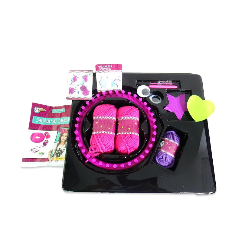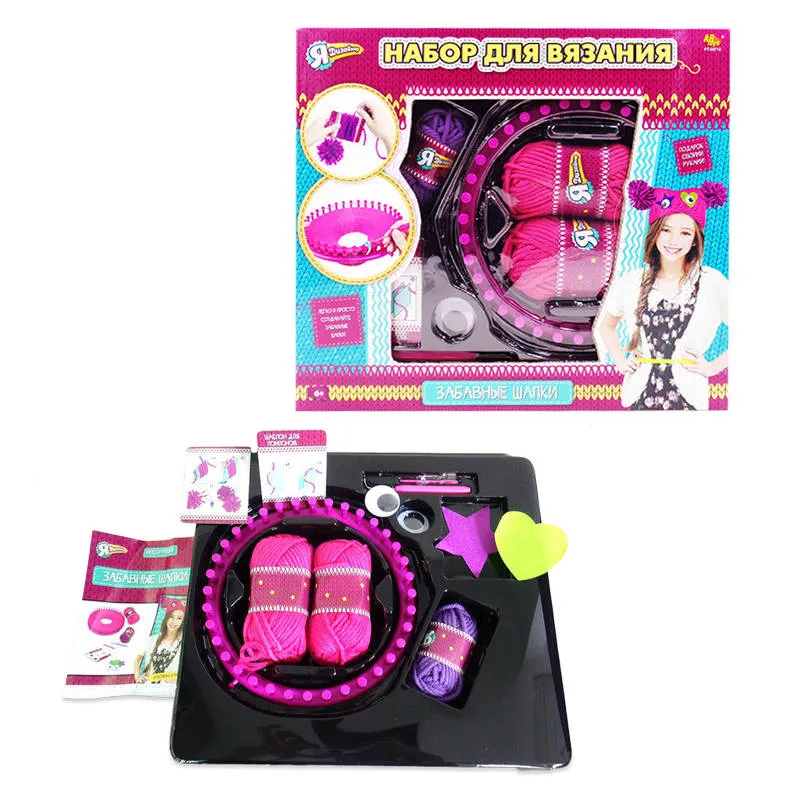 - Комплект для юных мастериц представлен всем необходимым для создания оригинальных шапок ручной работы: 3 мотка пряжи, инструменты для работы, аксессуары для украшения и инструкция.