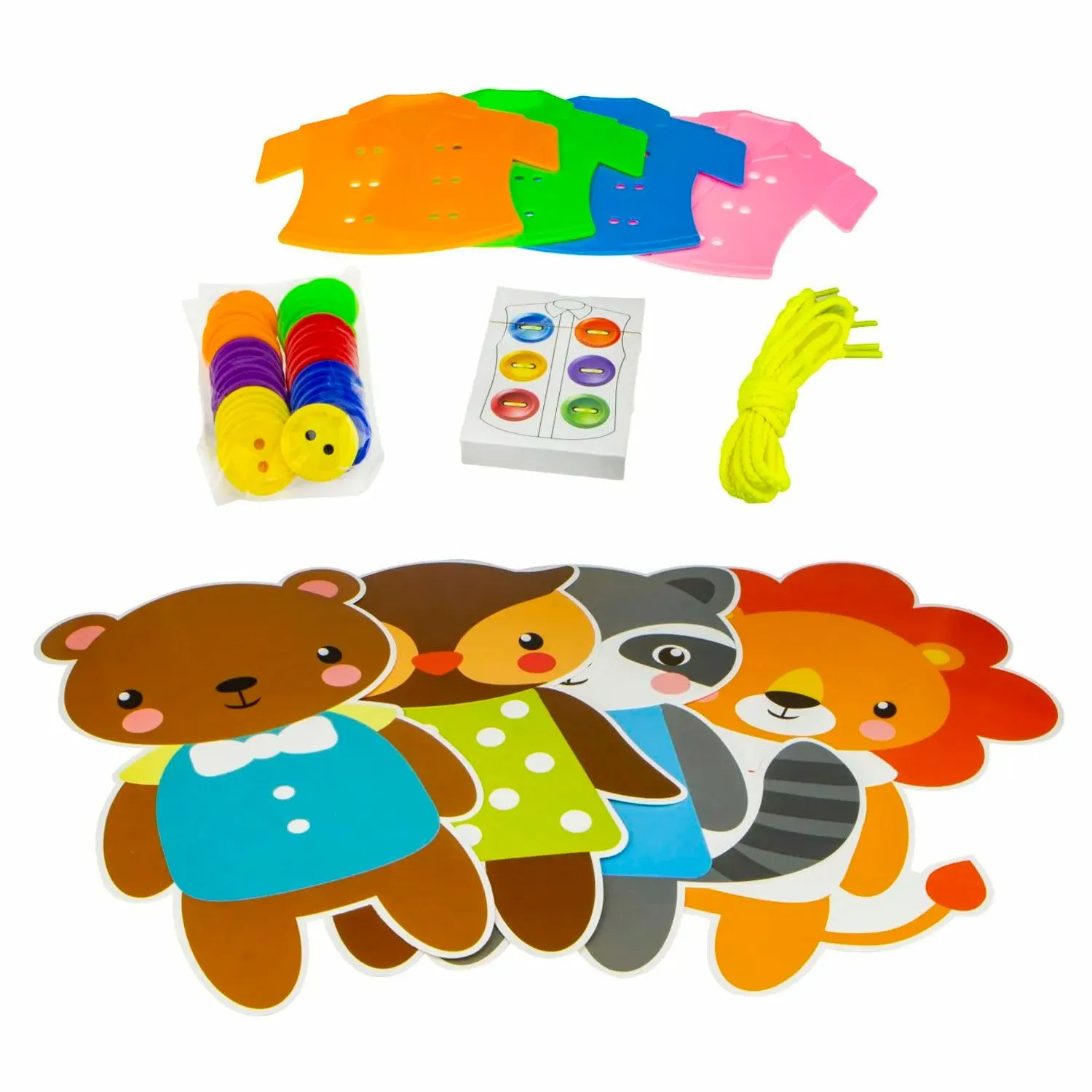 - игровые атрибуты выполнены в виде фигурок симпатичных зверят, карточек с дизайном рубашек и необходимой фурнитуры