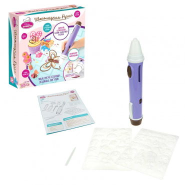 - юные кулинары смогут самостоятельно и безопасно приготовить разноцветные вкусные шоколадные конфеты, заливая глазурь (в набор не входит) в специальные формочки или рисуя им на кулинарной бумаге словно обычной ручкой
