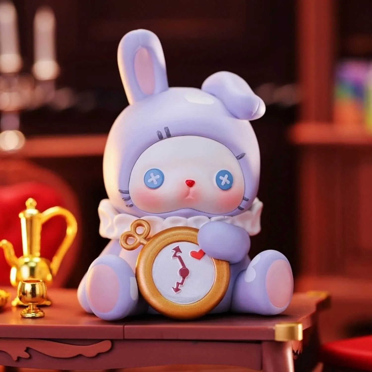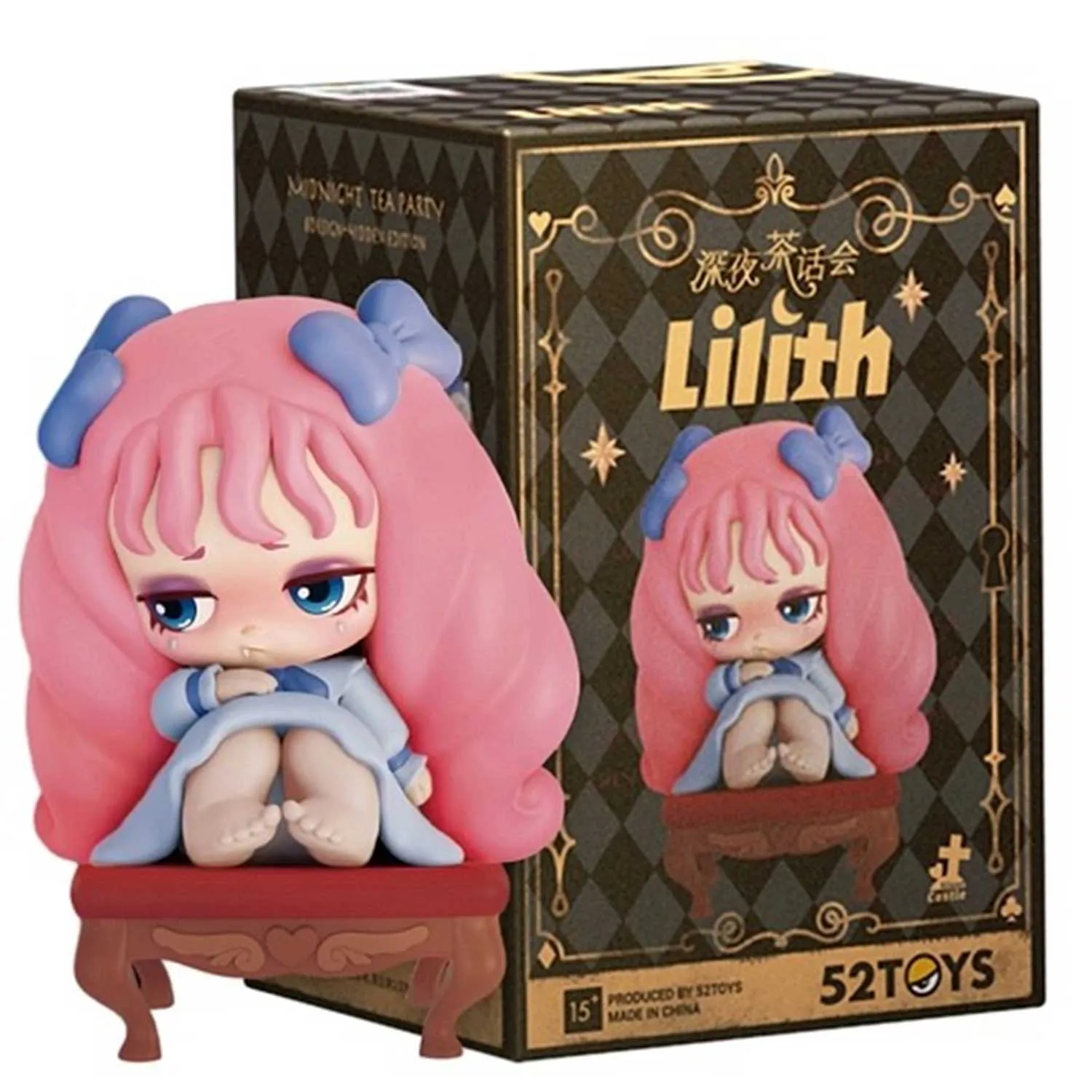 52TOYS – молодой бренд коллекционных игрушек, рассказывающий множество историй через свои оригинальные образы. В линейке Midnight Tea Party, используя тему Алисы в качестве основ, Лилит устраивает ночное чаепитие в замке. Иногда она Королева Червей, а иногда - Алиса, а к чаепитию присоединилось и маленькое привидение, пришедшее к ней в гости.