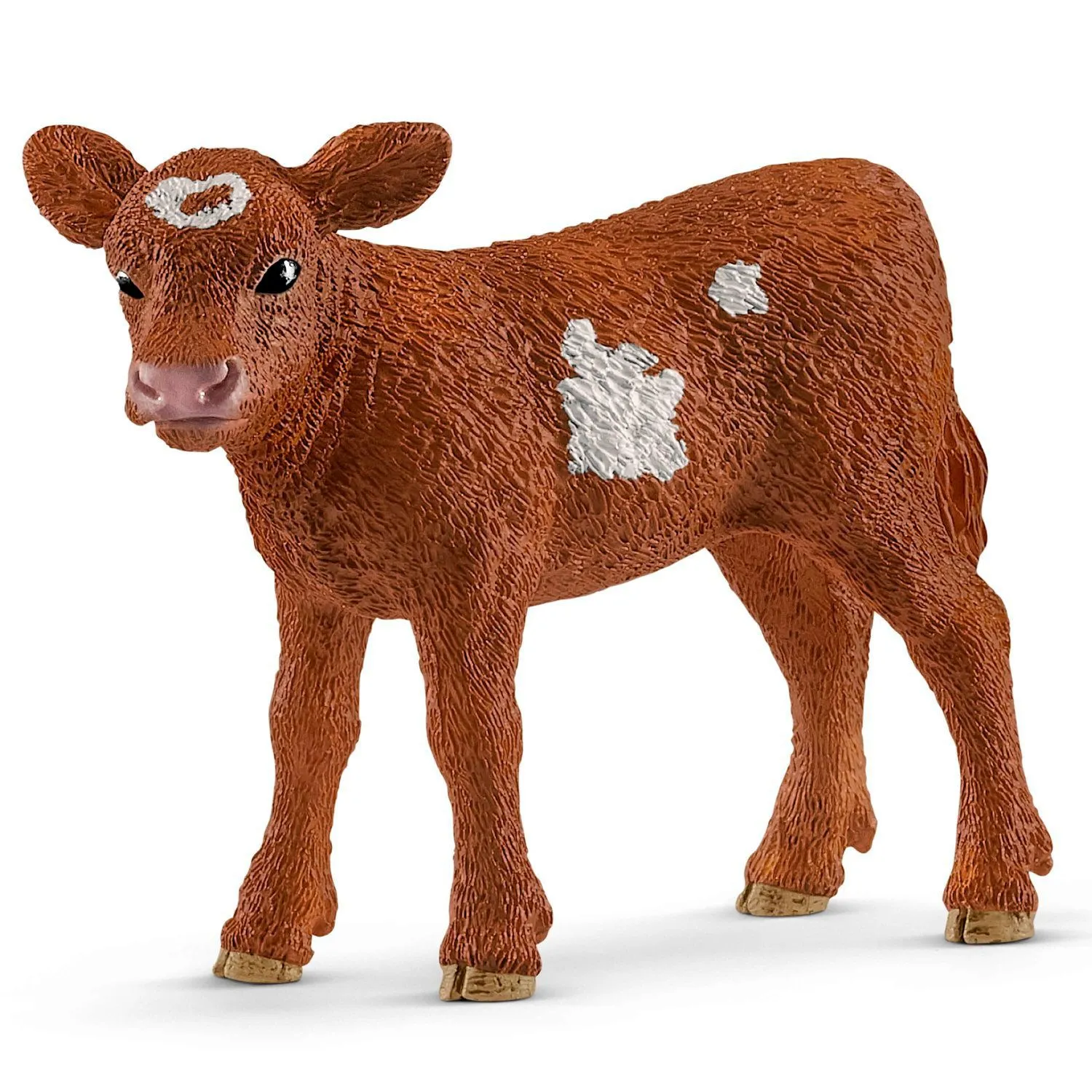 Теленок техасского Лонгхорна изображен с детальной точностью: бело-коричневый окрас и анатомия тела идеально повторяют породу.