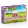 - используя многочисленные элементы набора, дети смогут создать ипподром и обустроить полосу препятствий для турнира, используя барьеры разной высоты с красочными рисунками и названием бренда, заграждение, торжественные флаги с флагштоками, ворота, клумбы и деревья для озеленения территории