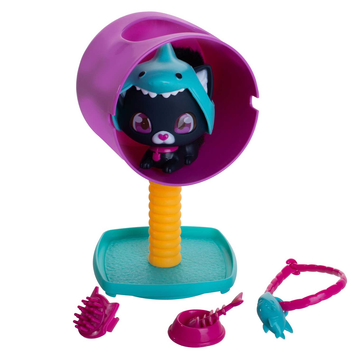 - множество аксессуаров: наденьте браслет с шармом-волной на руку, добавьте ошейник с «акульими зубами» или расчешите шёрстку специальной расческой — каждая деталь превратит Аш в хозяина моря! Поставьте рядом миску с рыбьей косточкой или декорируйте домик наклейками с медузами и осьминогами из комплекта — каждая деталь оживит историю! А ещё в наборе есть столбик для игр и лифлет с забавными фактами об Аш: может, он охраняет затонувший клад или дружит с добрым китом?