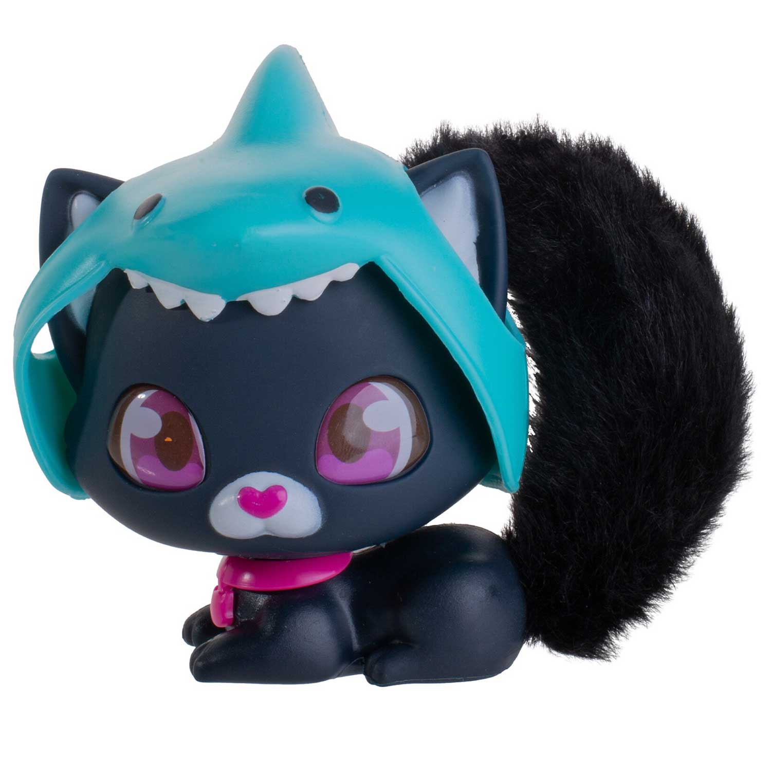 - Аш — черный котик-мореход в шапочке-акуле, готовый нырнуть с вами в пучину приключений! Его угольный окрас и хищный дизайн шапочки словно созданы для тайн океана