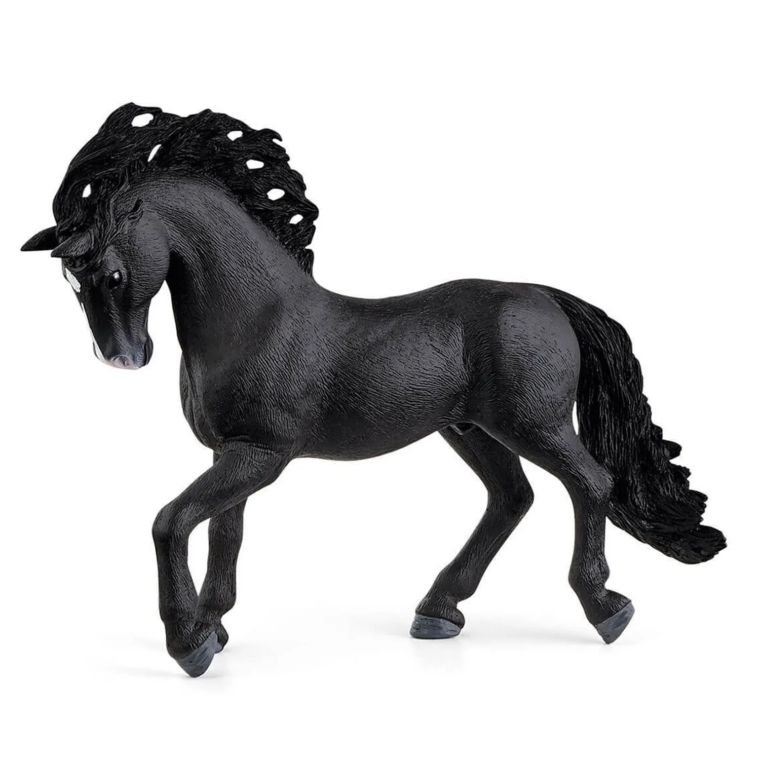 Жеребец Пура Раза Эспаньола это гордый вороной конь с элегантно изогнутой шеей, благородной формой головы, длинной струящейся гривой и пышным хвостом. Лошадей этой породы часто считают андалузцами и наоборот. Это вряд ли может удивить, поскольку они являются самостоятельной линией скрещивания в пределах андалузской породы. Чтобы отличить их от других лошадей, племенные книги ведутся по твердым правилам.