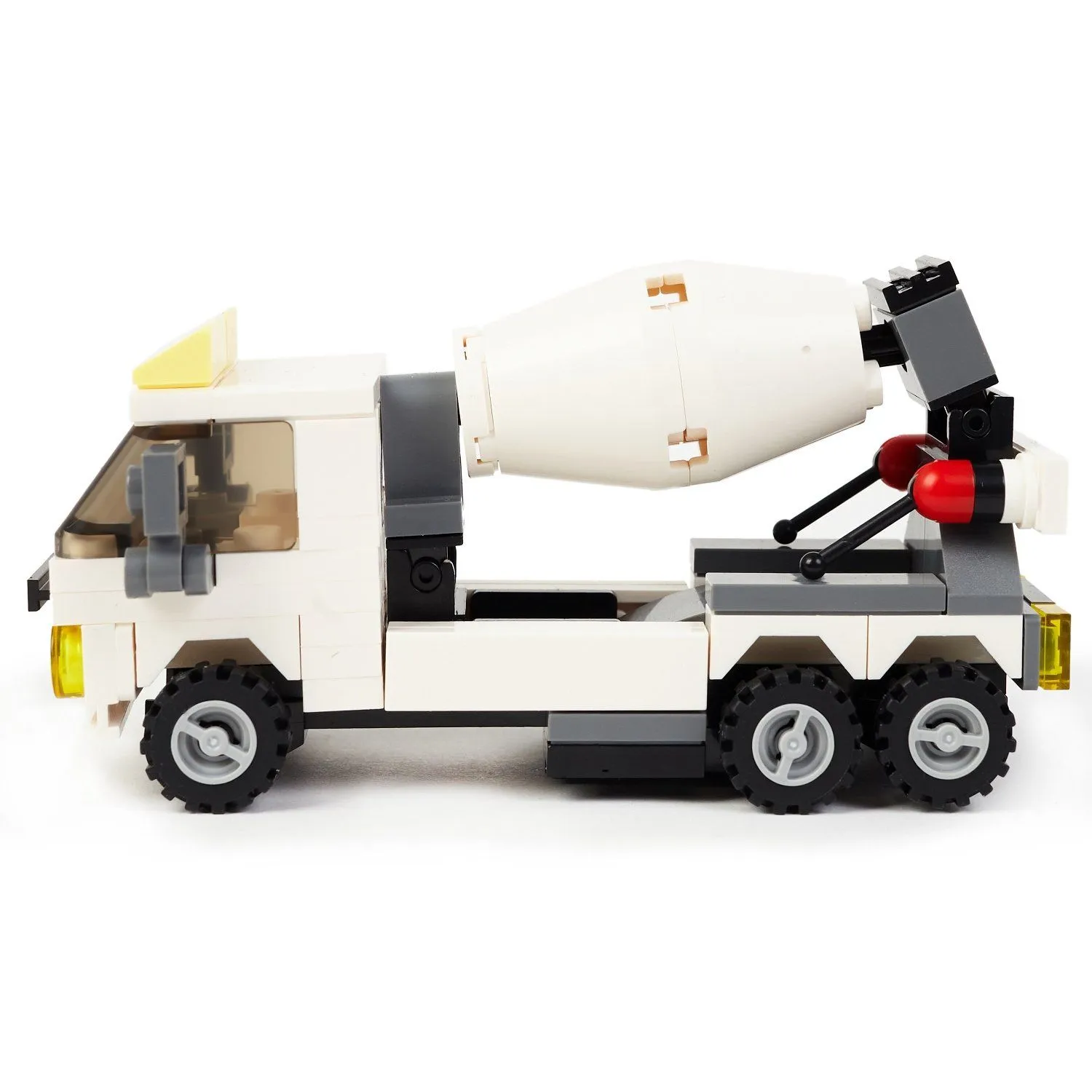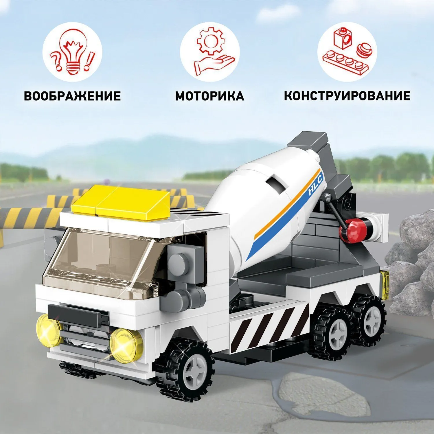 - набор с машиной в виде бетономешалки с крутящимся барабаном для воссоздания реальных историй