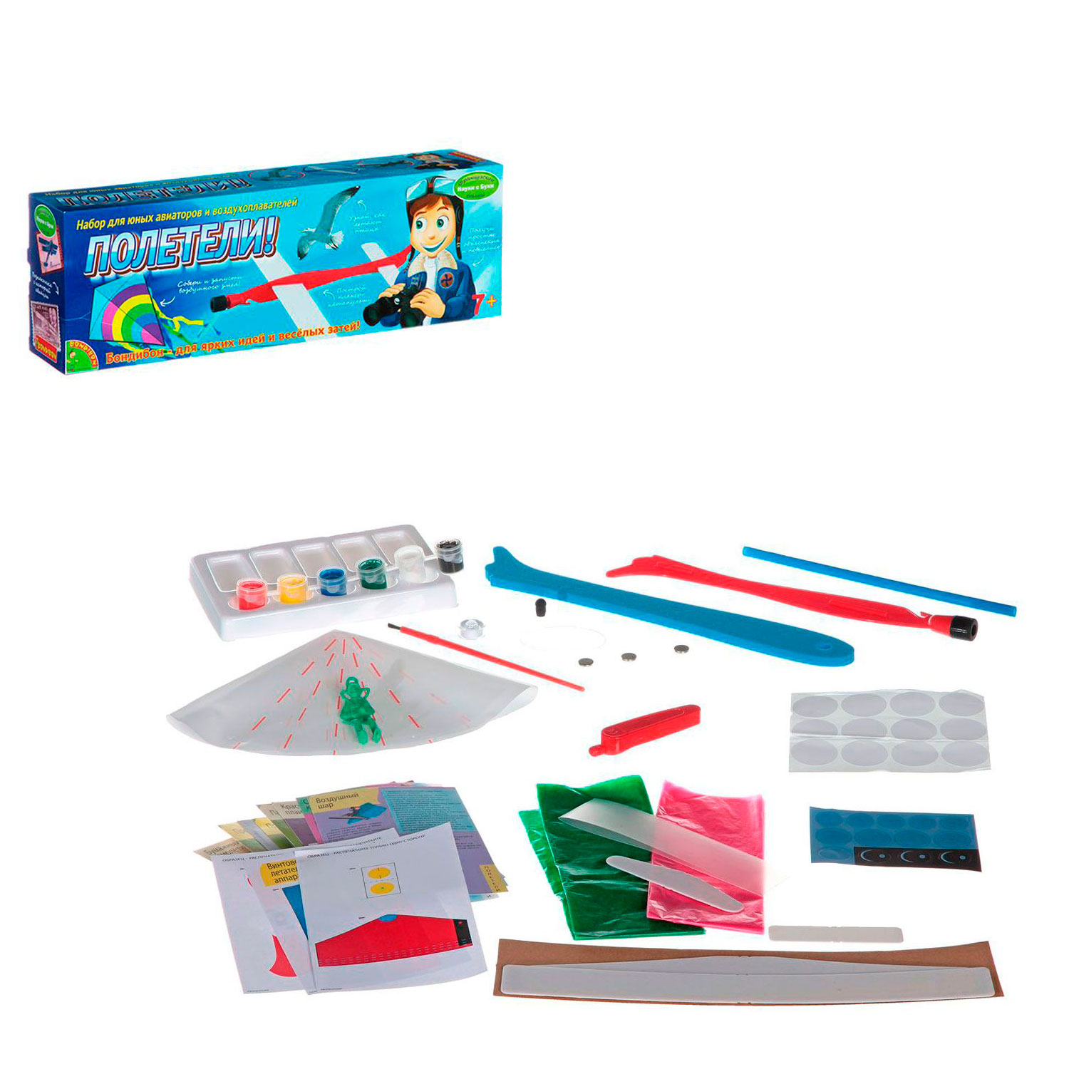 - в наборе ребенок найдет интересную иллюстрированную брошюру, в которой излагается история воздушных полетов и воздухоплавания, рассказаны истории людей, стоявших у истоков современной науки о полетах