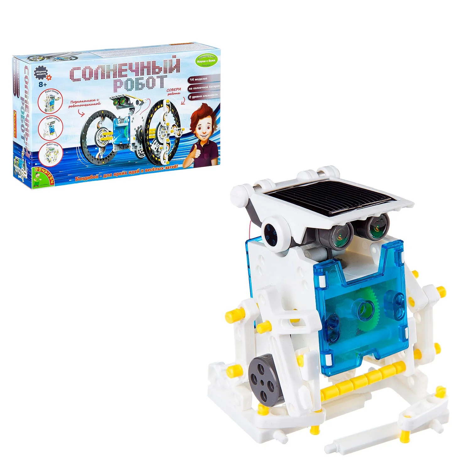 Соберите робота, и познакомьтесь с робототехникой альтернативной энергией! Любая собранная модель робота приводится в движение с помощью солнца, так что батарейки не потребуются. Робот начинает двигаться при прямом попадании на него солнечных лучей.