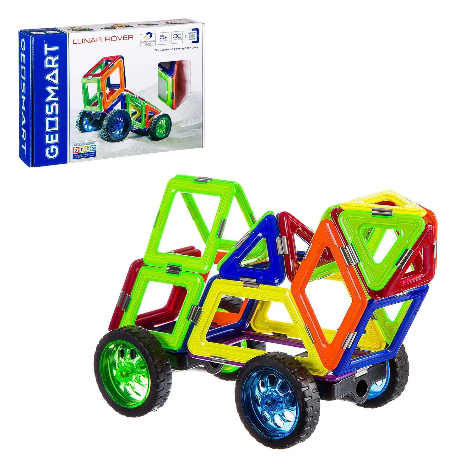 - используйте колёса и детали в виде пяти различных геометрических фигур, чтобы построить луноход и управлять им