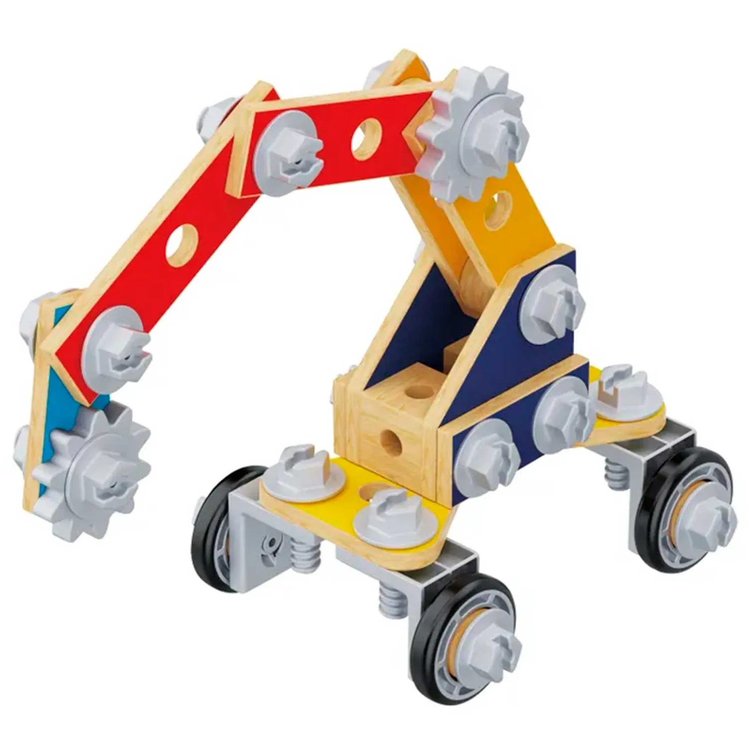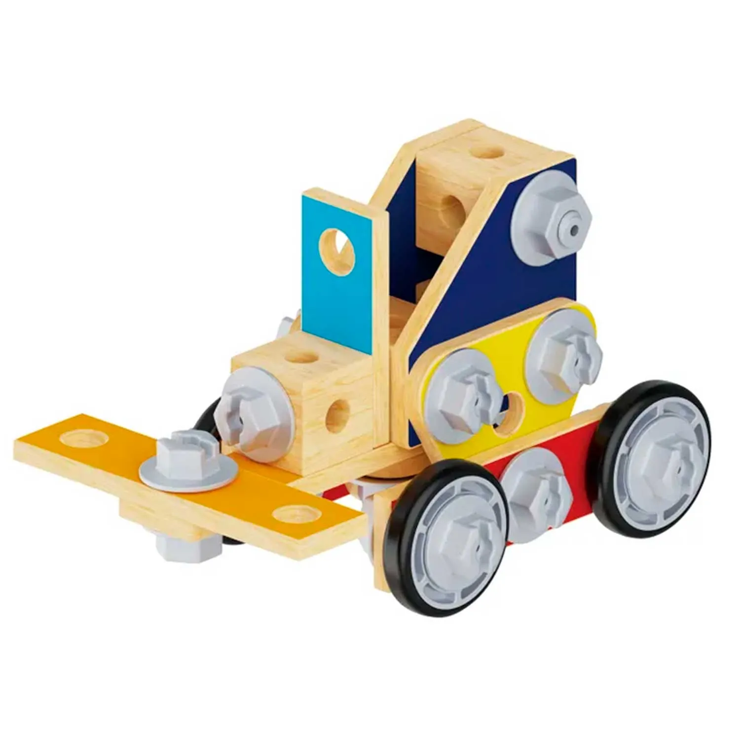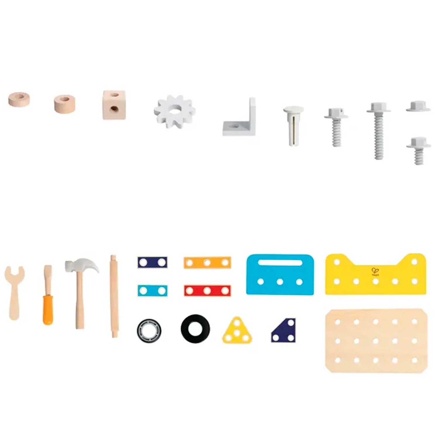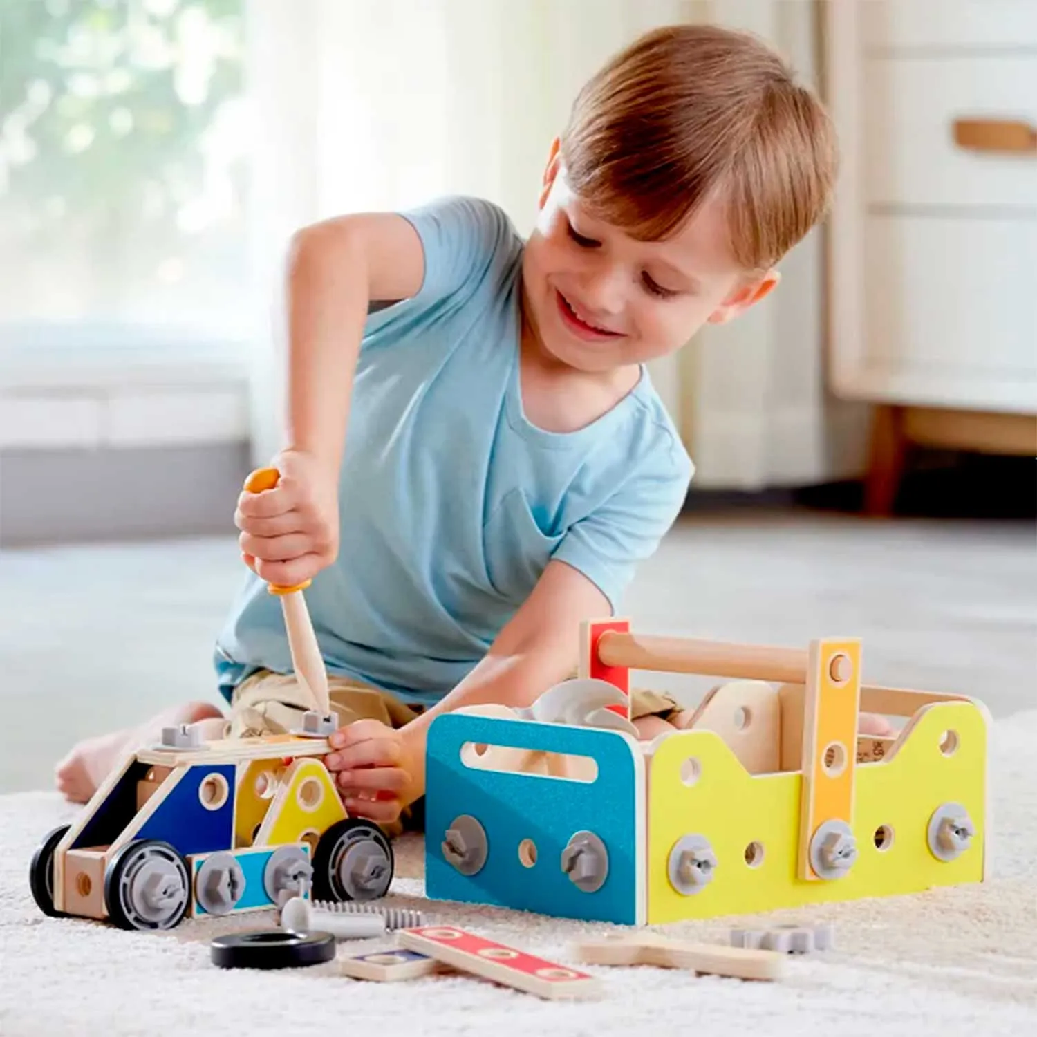 - в комплект входят 83 детали, включая игрушечные инструменты, винты, гайки и строительные элементы