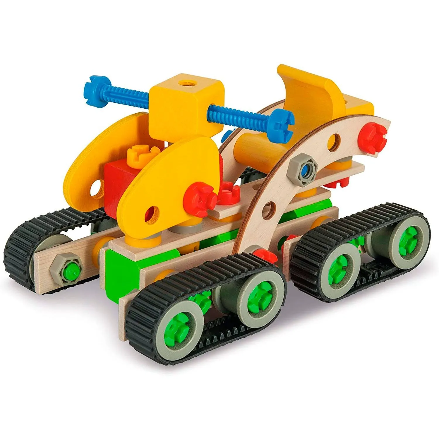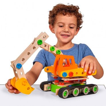 - детали конструктора выполнены из натуральной шлифованной древесины высокого качества, которая не оставляет на руках ребенка заноз и царапин