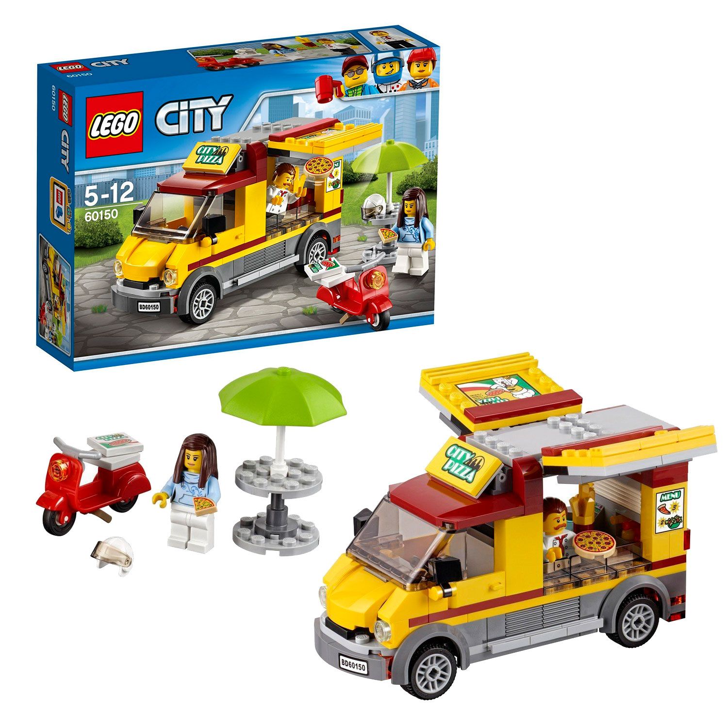 Конструктор Лего из серии "Сити" предлагает ребенку разыграть увлекательный сюжет с фургоном пиццерия.