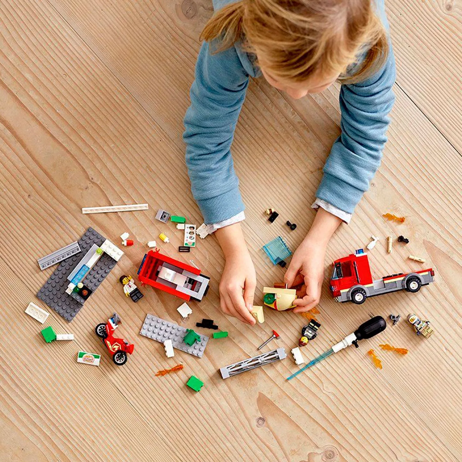 Конструктор Лего из серии "Сити" предлагает ребенку разыграть увлекательный сюжет на тему профессии пожарного.