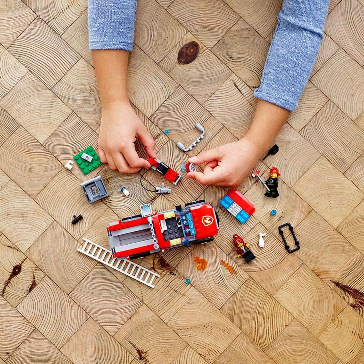 Конструктор Лего из серии "Сити" предлагает ребенку разыграть увлекательный сюжет на тему профессии пожарника.