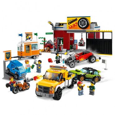 Конструктор Лего из серии "Сити" предлагает ребенку разыграть увлекательный сюжет в тюнинг-мастерской.