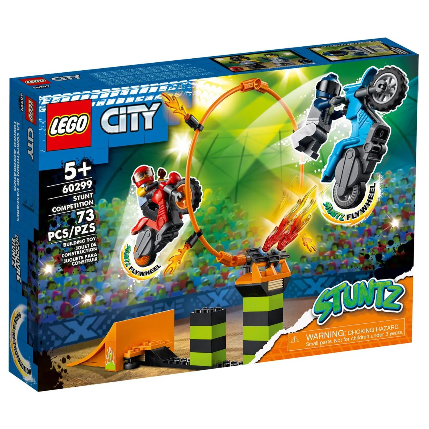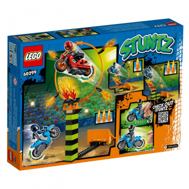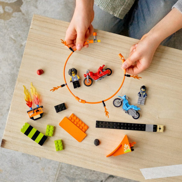 Конструктор Лего из серии "Сити" предлагает ребенку разыграть увлекательный сюжет на арене для состязаний трюков.