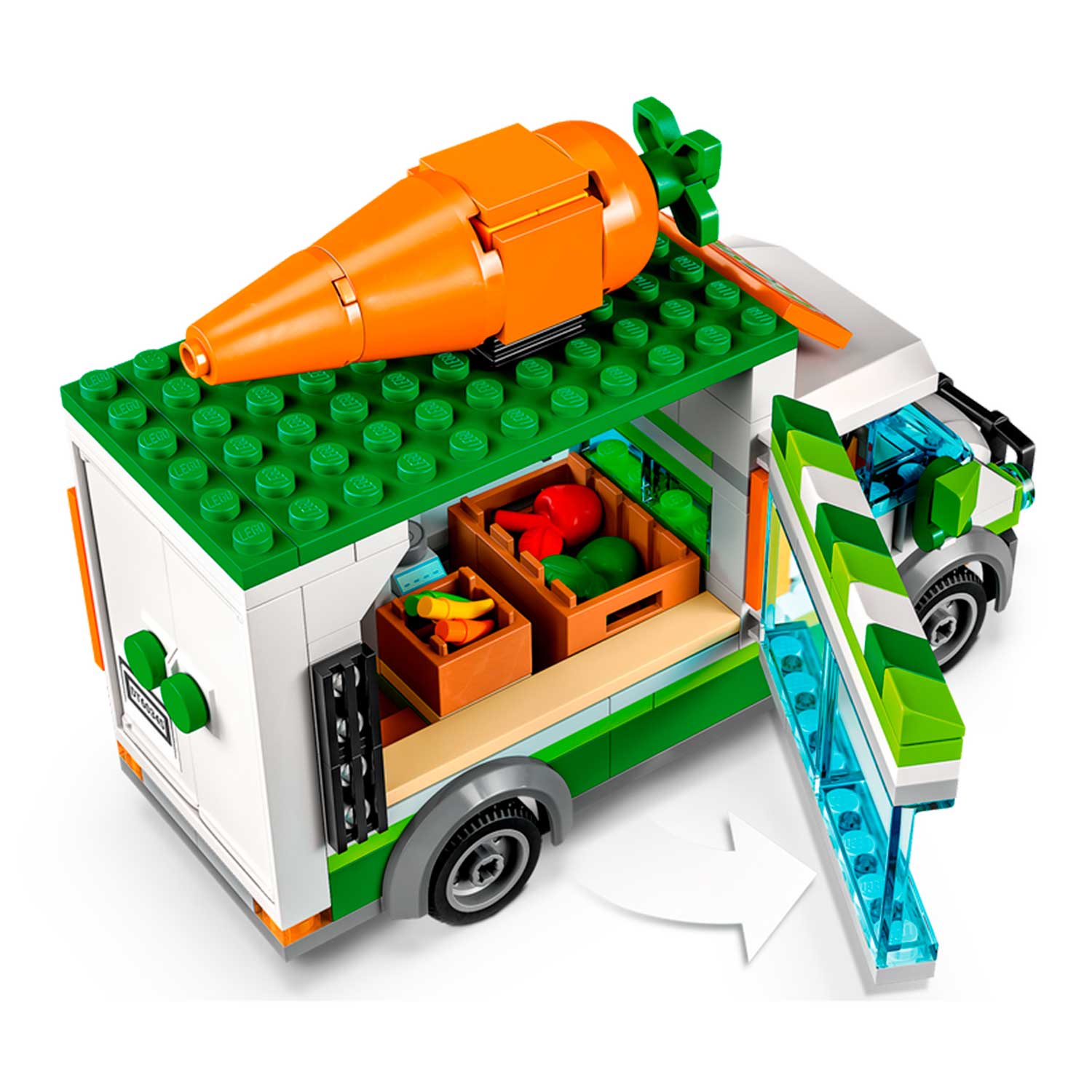 Конструктор Лего из серии "Сити" предлагает ребенку разыграть увлекательный сюжет по доставке продуктов на фермерский рынок.