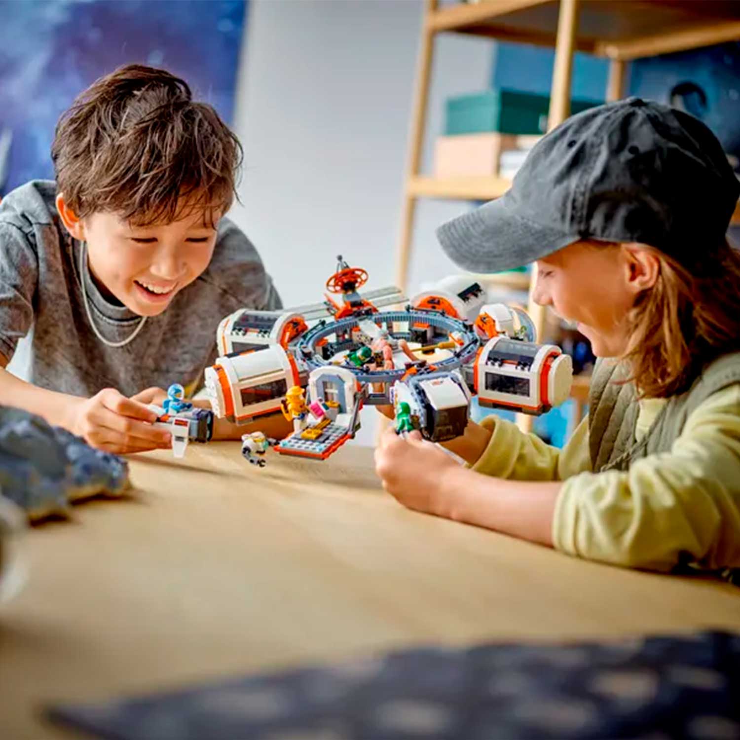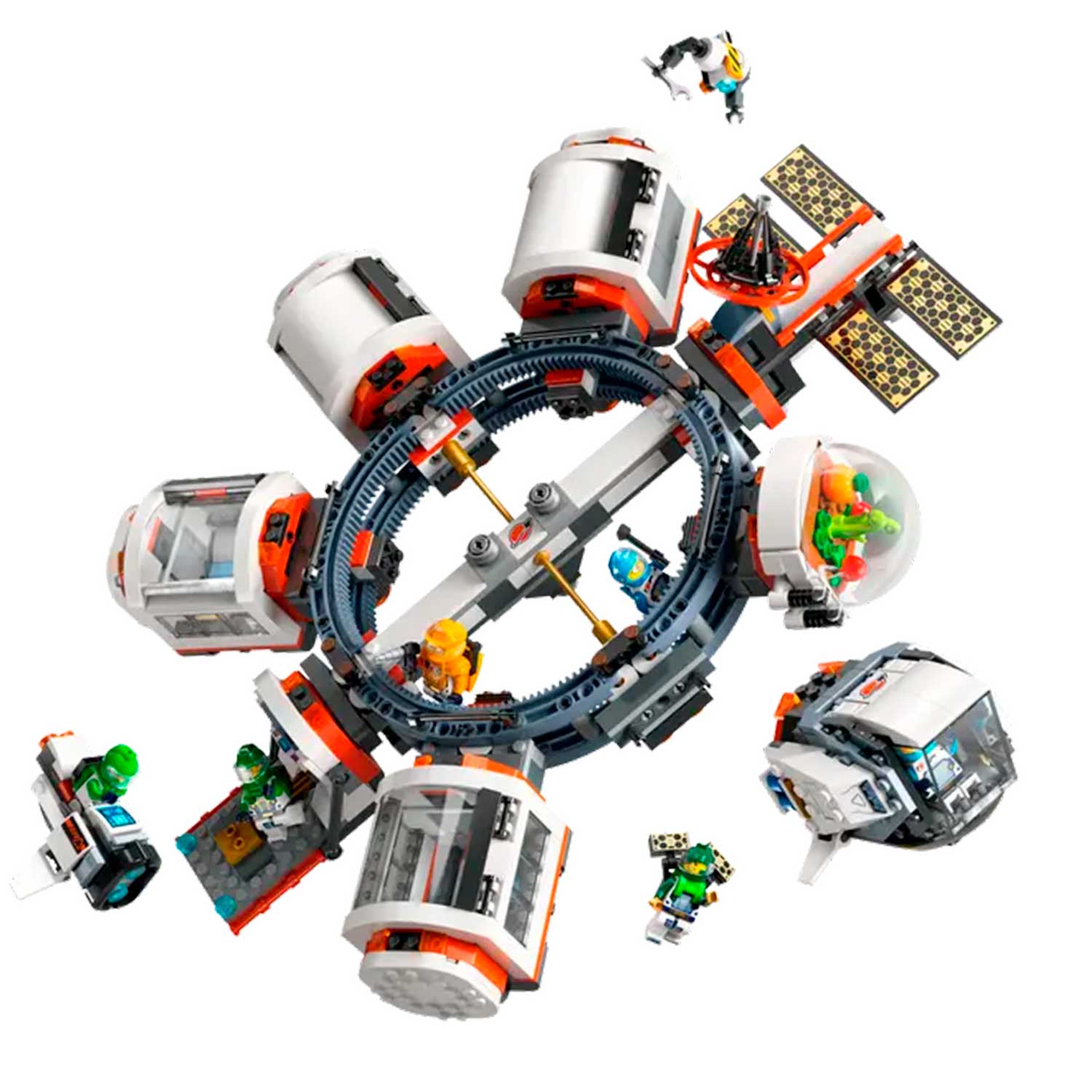 - в наборе : орбитальный стыковочный модуль, комнаты-капсулы, спутник, космический велосипед, игрушечный космический челнок, исследовательская научная лаборатория, ремонтная мастерская, кухня, спальные помещения и биокупол