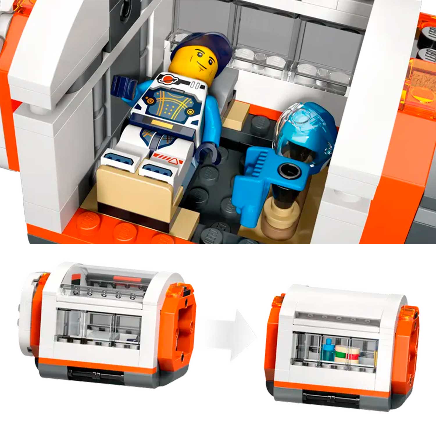 - модульные комнатные капсулы LEGO и космический корабль оснащены системой воздушного шлюза для соединения с другими совместимыми наборами космической тематики, например - арт.60434