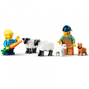 - в набор входят минифигурки фермера и его дочери, а также 2 фигурки овец, фигурки ягненка и щенка