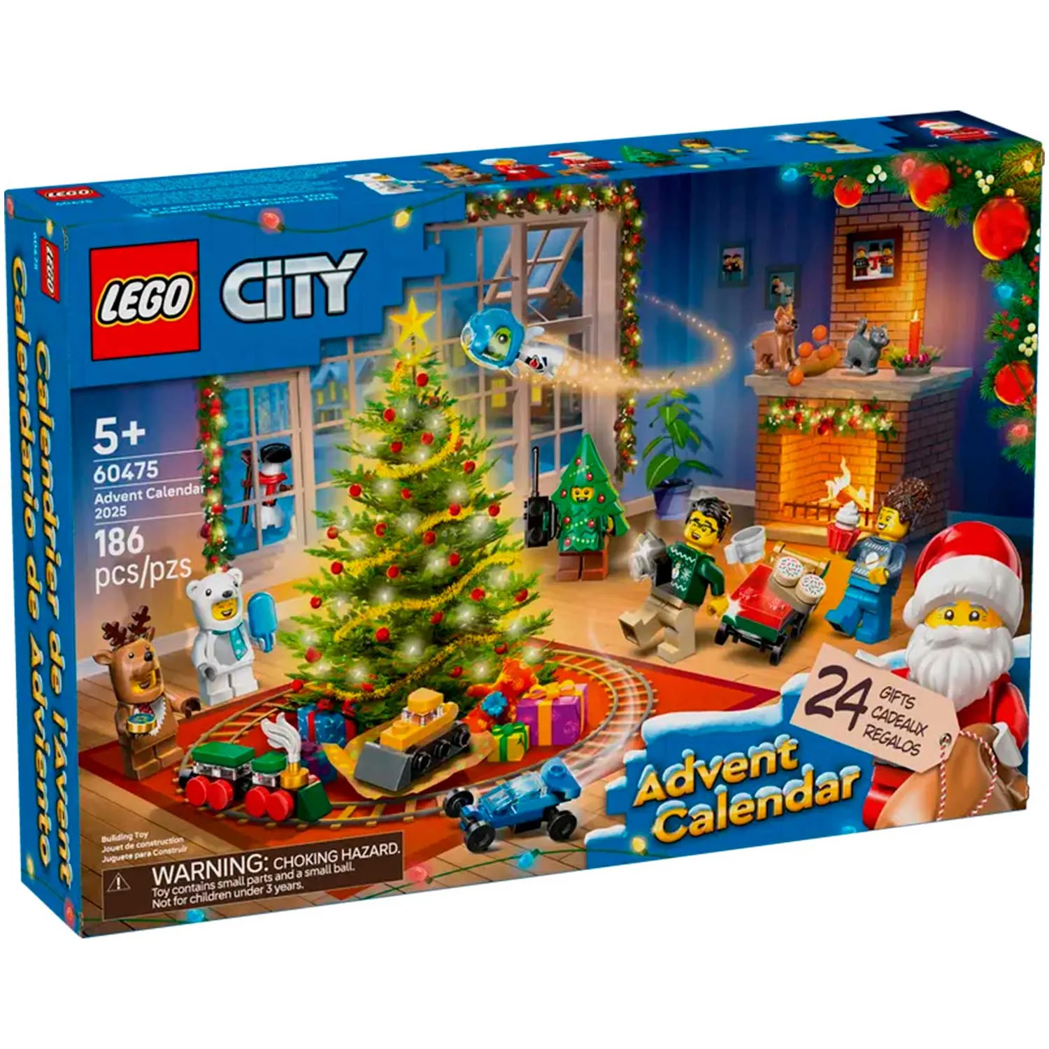 - подарочный набор с 24 сюрпризами, включает в себя минифигурки Санты и миссис Клаус, персонажей в костюмах белого медведя, оленя и рождественской елки, мини-конструкторы и забавные аксессуары