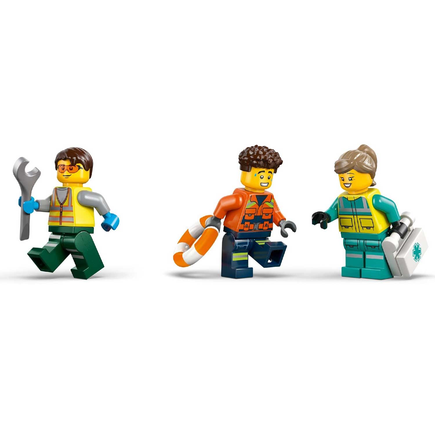 - в набор входят минифигурки персонажей — медик, водитель сервисного грузовика и спасатель береговой охраны. Они помогают детям разыгрывать захватывающие истории и учат командной работе