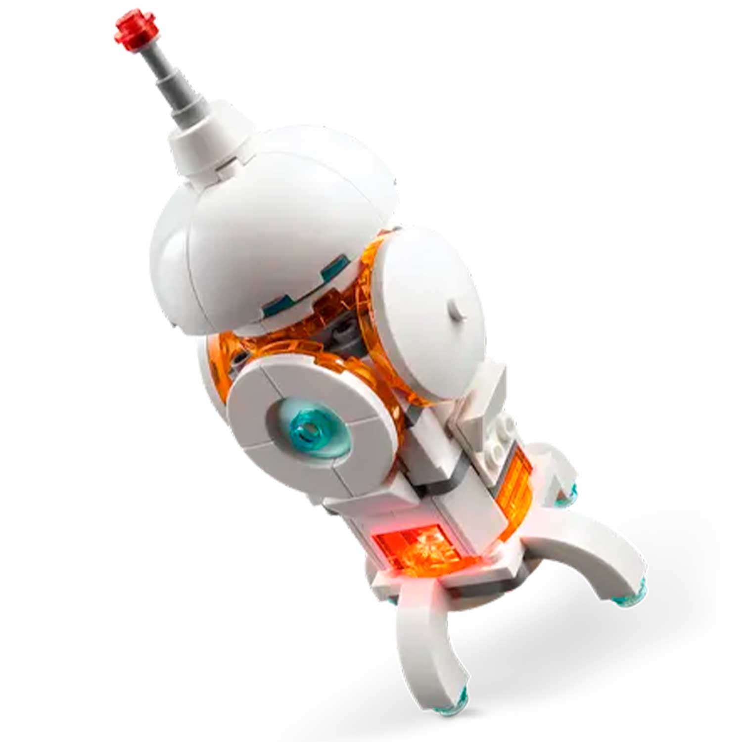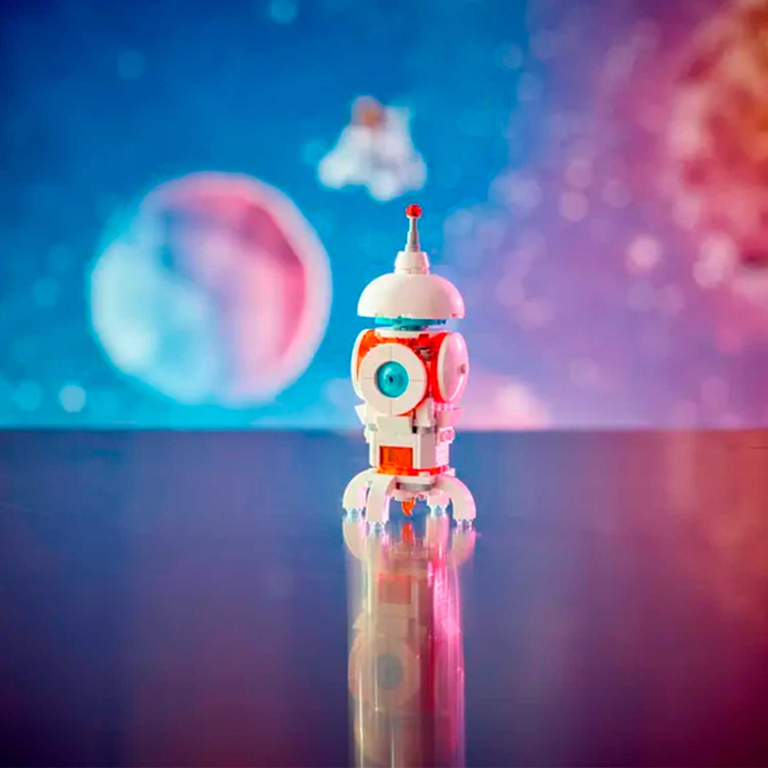 - все 3 космические модели LEGO в этом наборе для строительства загораются, когда дети нажимают на специальный светящийся кирпичик (батарейки входят в комплект)
